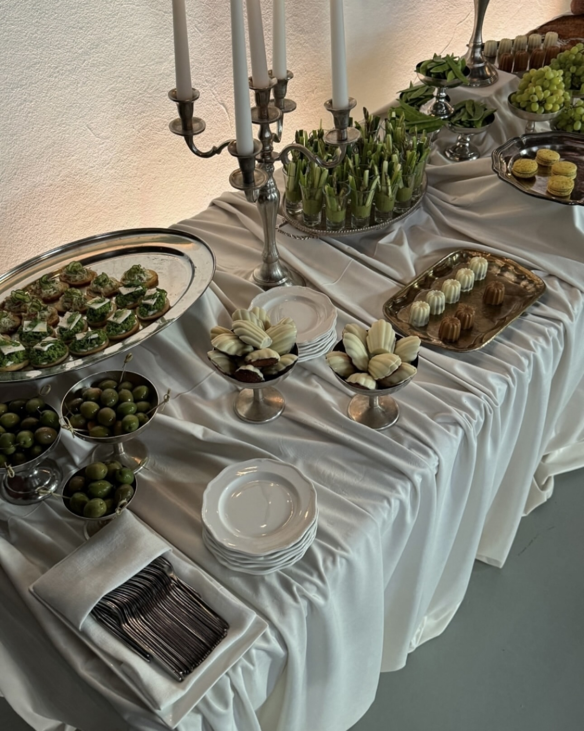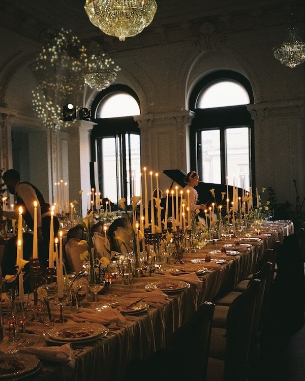 Our morning began in an old mansion that has since been converted into a boutique hotel with just 12 rooms. It always feels like you’re the only ones there—an ideal choice. For the wedding itself, we chose an old mansion, the Spiridonov Mansion, located in the center of the capital. The atmosphere was one of quiet French elegance, with the entire venue adorned with greenery and flowers. The greenery literally climbed the walls of the mansion. Paintings hung on the walls, silver tableware gleamed, and live candles illuminated the tables with their warm glow.