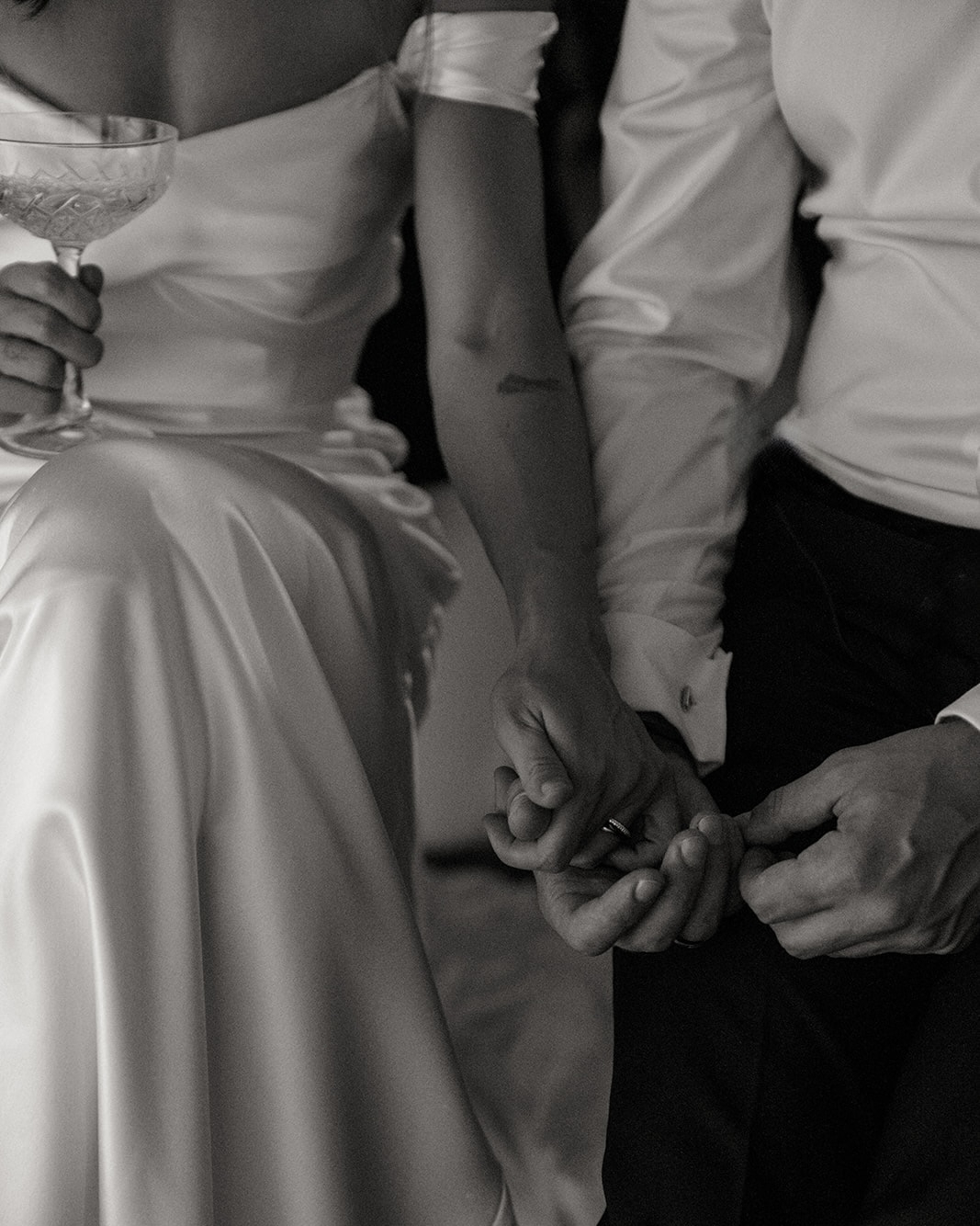 For our wedding bands, we chose Cartier Trinity rings, which are very special to us because of their profound meaning. One band represents Love, the second Friendship, and the third Loyalty. My ring also has an engraving that says "forever", which holds a deep significance. A couple of years before we got married, Kirill gave me my first ring from Chrome Hearts during a trip to New York, and it had the word "forever" inscribed on it. Now you can see why the engagement ring had to be from Chrome Hearts and why that engraving means so much to me!