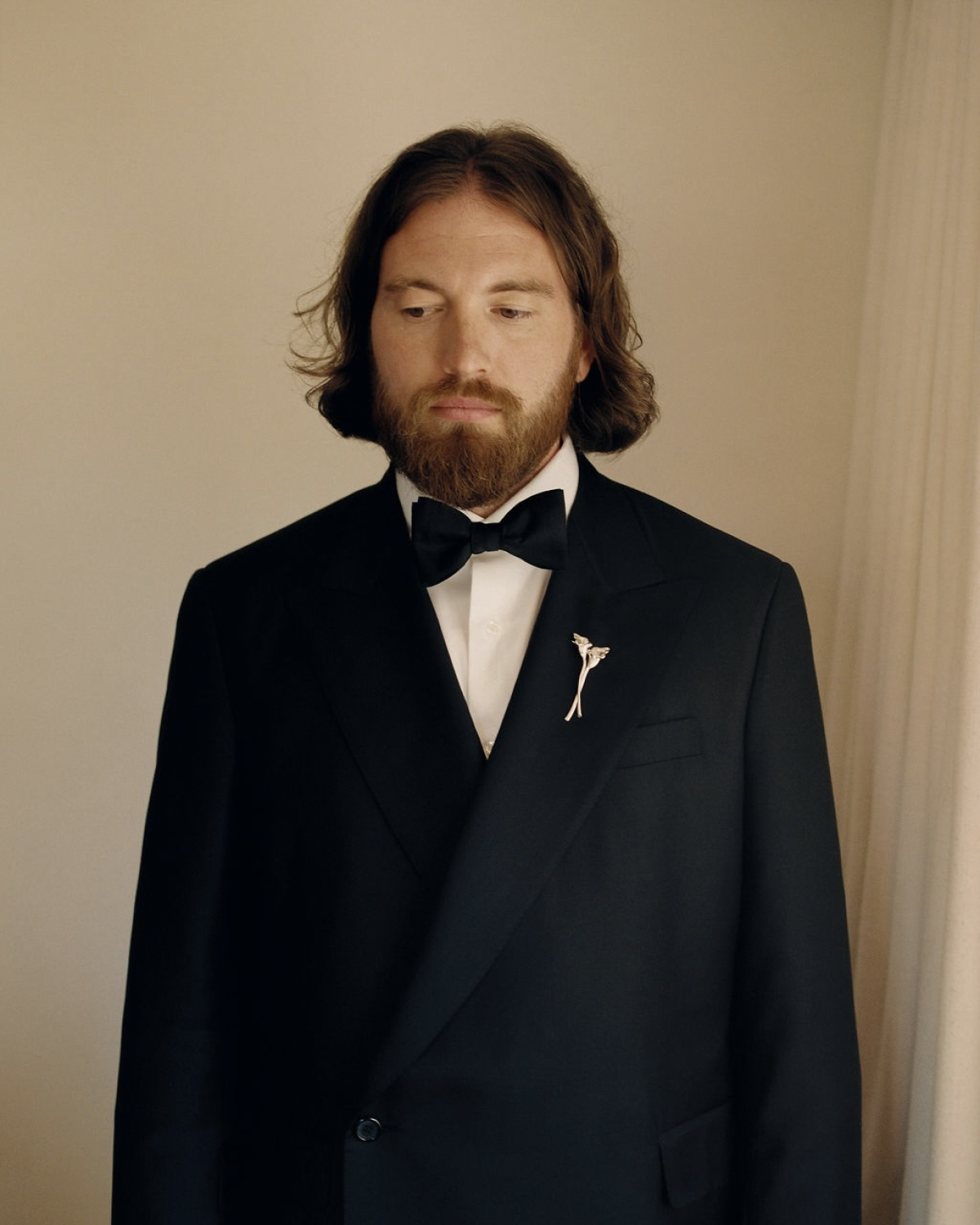 David had his suit custom-made by High Society in Los Angeles. He loved that it’s a family-owned business that has been around for years; the process felt personal and grounded. The suit was beautifully tailored and comfortable, which mattered to him. His custom calla lily brooch and cufflinks from Third Reasons were the final touch—subtle, symbolic, and one of our favorite details of the day.