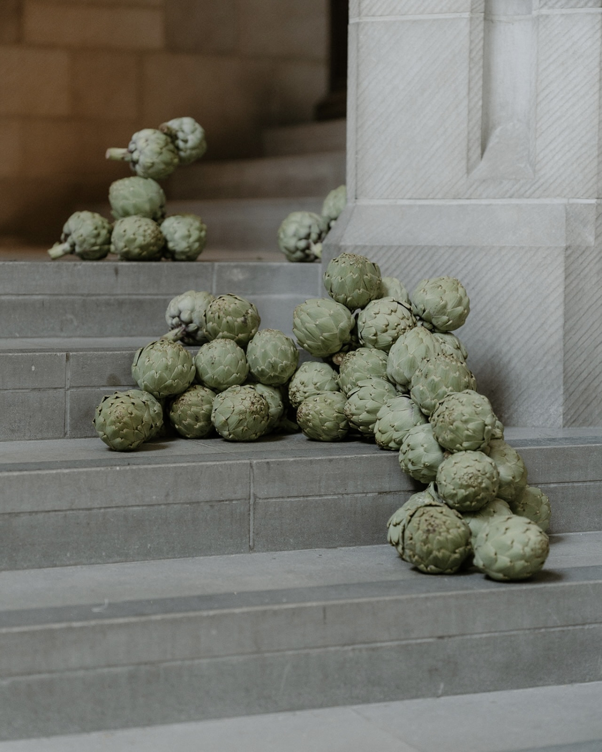 We leaned on floral décor to bring in that unexpected element. We purposefully chose non-traditional wedding colors with dark, bold, rusty tones; quirky-shaped arrangements; and even artichokes for a whimsical feel. One of my favorite design elements—and one that still makes me smile—was the artichokes framing the descending steps of the church aisle.
