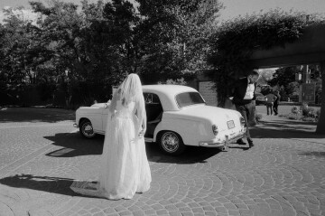 At my first wedding dress appointment, I wasn’t entirely sure what I was looking for. But when I tried on the Camille by Danielle Frankel, I was surprised by how quickly it felt like the right choice. I fell in love with the gown’s silhouette and intricate pleating. For the reception, I changed into an open-back, full-sequin Tom Ford gown that captured the old-school glam look I wanted. My first job out of college was as the PR Assistant for Tom Ford, so it felt like a fitting choice.