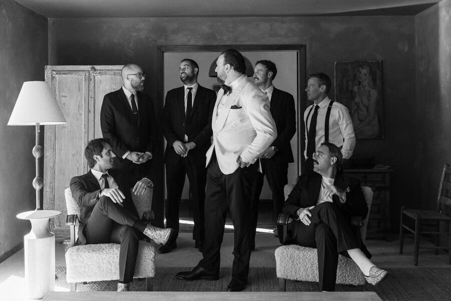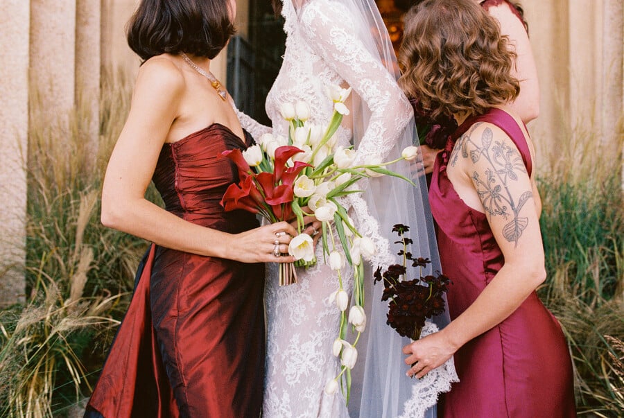 So many of our loved ones are in the arts, so it was important to us that everyone could fully express themselves through their looks. We provided a color palette and gave everyone full rein on everything else.