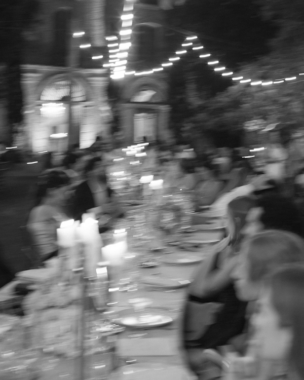 The reception took place at El Molí de la Torre, an old farmhouse beautifully restored in 1853. The venue was truly one-of-a-kind, offering different areas that made every moment of the wedding feel special. We held the cocktail hour in the garden, surrounded by fig trees. For dinner, we set up in the front garden with a stunning view of the house. I envisioned three long dinner-style tables, with no traditional head table. Max and I sat with our parents and grandparents, and we were surrounded by friends on both sides – creating a relaxed, communal feel.