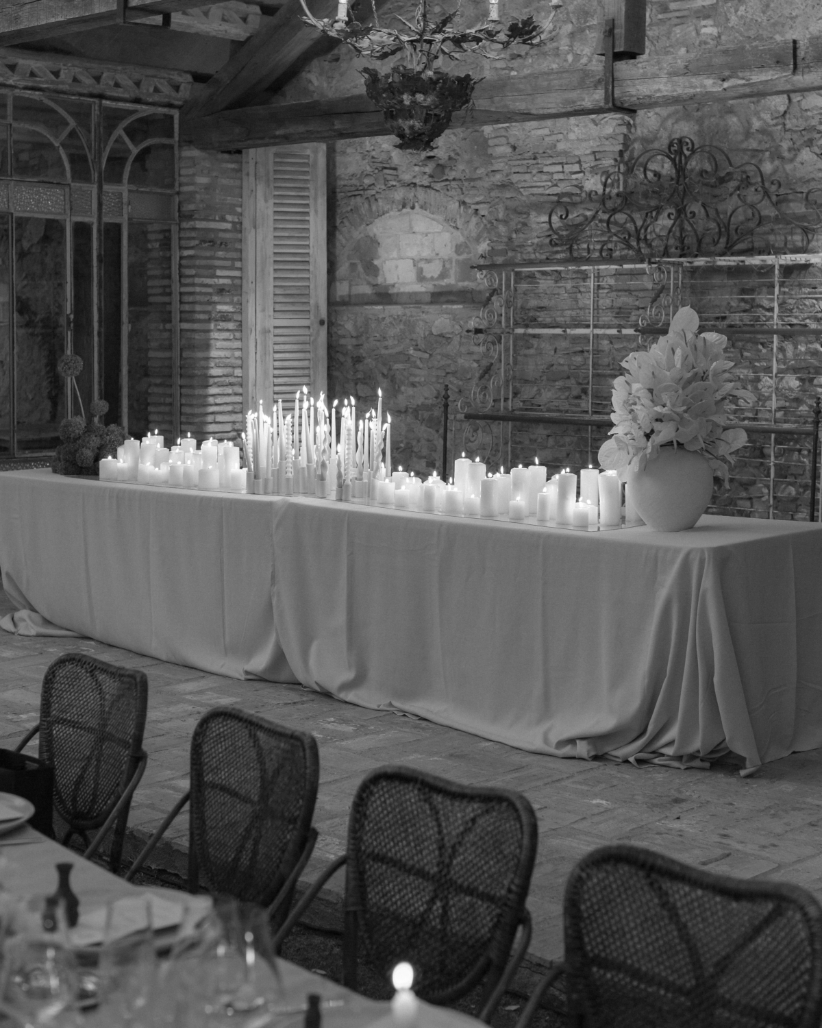 I added linen fabric to the altar, arranged my ceramic candle holders with Sendra taper candles, and asked Manuela to create a stunning centerpiece with calla lilies and white anthuriums. The result was everything I’d hoped for – a perfect balance of minimalism, simplicity, and elegance.