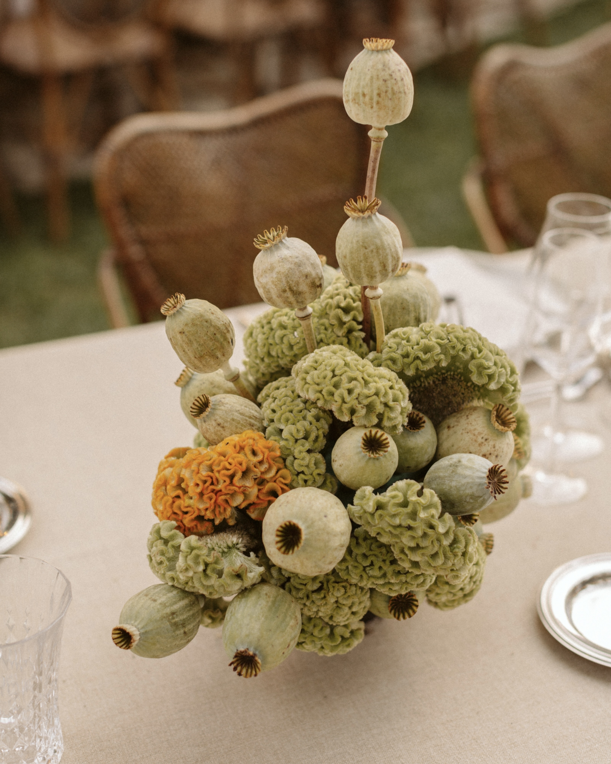 I created an altar with my ceramic pieces and candles, which sat behind us at the dinner table and also became the backdrop for the speeches. It was truly beautiful and felt deeply personal. Another special touch we added were the wedding favors and handwritten notes for each guest. We wanted to show our gratitude to everyone who came to celebrate with us, so I spent over a year hand-throwing 250 tiny, unique ceramic vases – one for each guest. It was important to us that they take home something meaningful to remember the day.