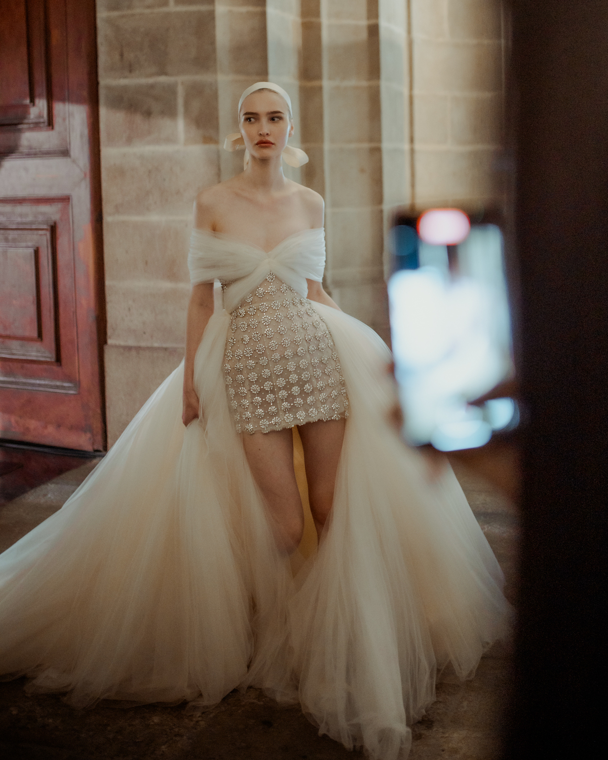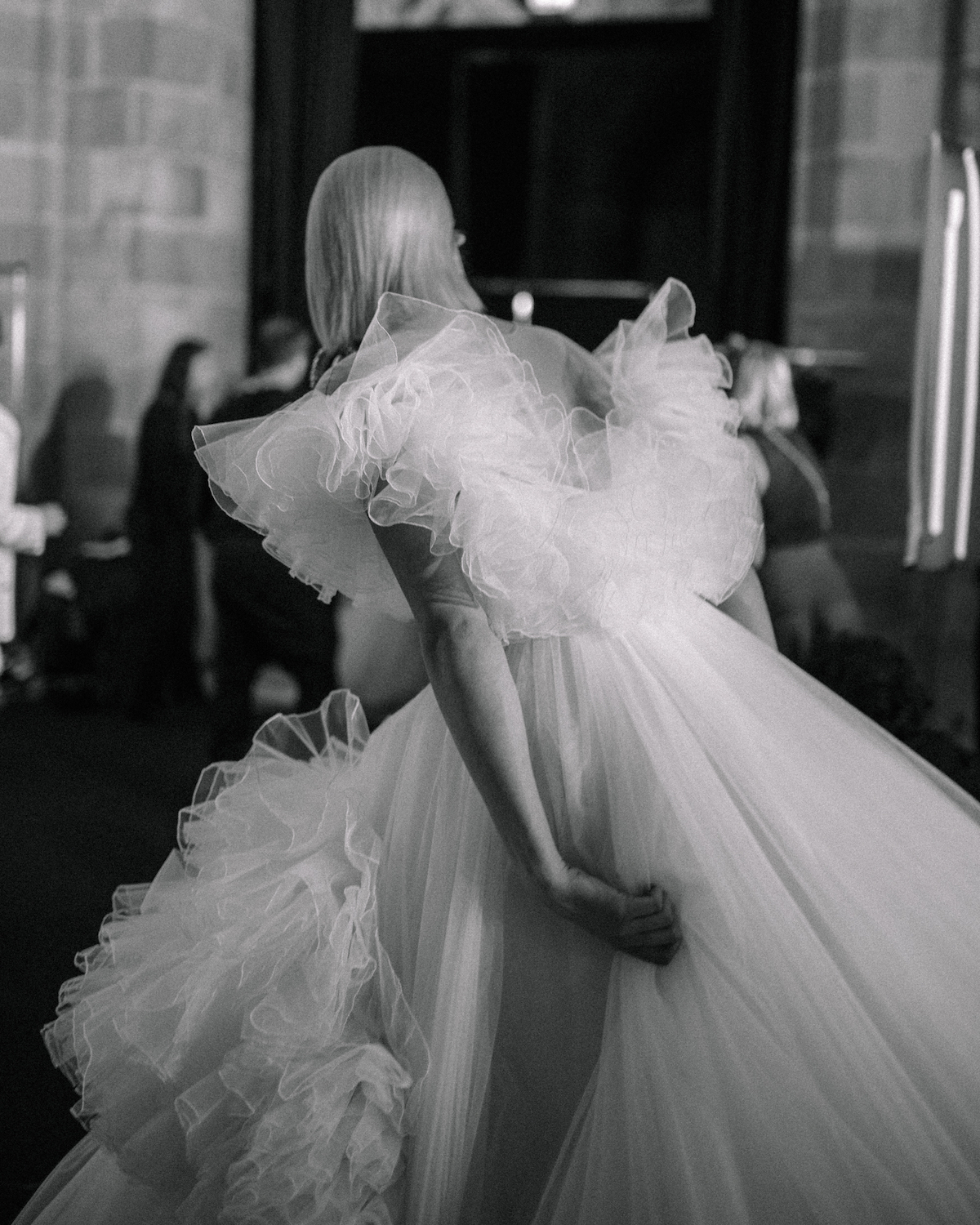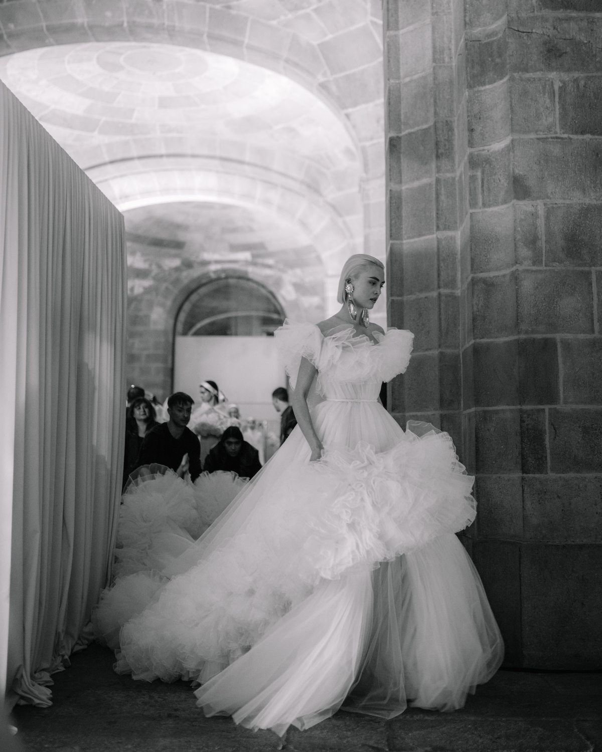 Reminiscent of Degas’ ballerinas, an electric anticipation flows through the scene as final stitches are woven, volumes of tulle bathed in poetic light, and a cast of girls awaits their moment to enter stage. It’s the first look at Parisian based designer Giambattista Valli’s Love Collection 3, bridal steeped in his signature dramatic proportions and romantic fabrications. As his first foray into Barcelona Bridal Fashion Week, the presentation does not disappoint. Here, you will find a mix of new avant-garde styles alongside iconic GV silhouettes plucked from couture collections of season's past, a delight to any fashion aficionado. Completed with dramatic jewels, whimisical rosettes, and the chicest bow headbands we ever did see... a collection that lingers in our hearts.