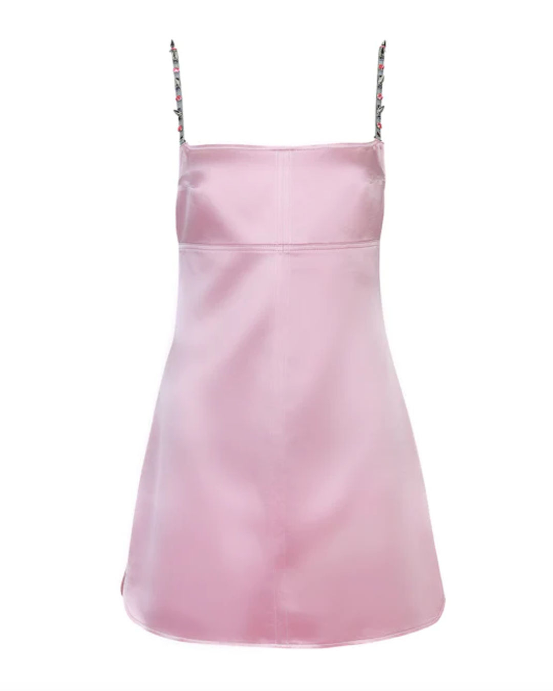 Nodress Rhinestone Rivet Gray Leather Straps Pink Dress, $228