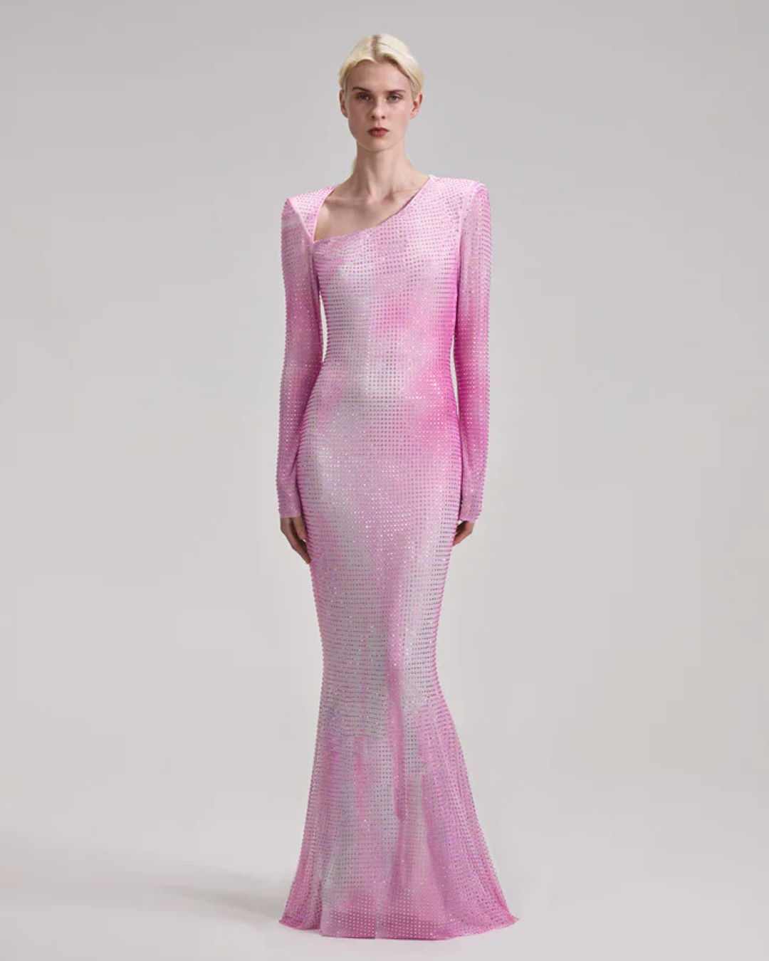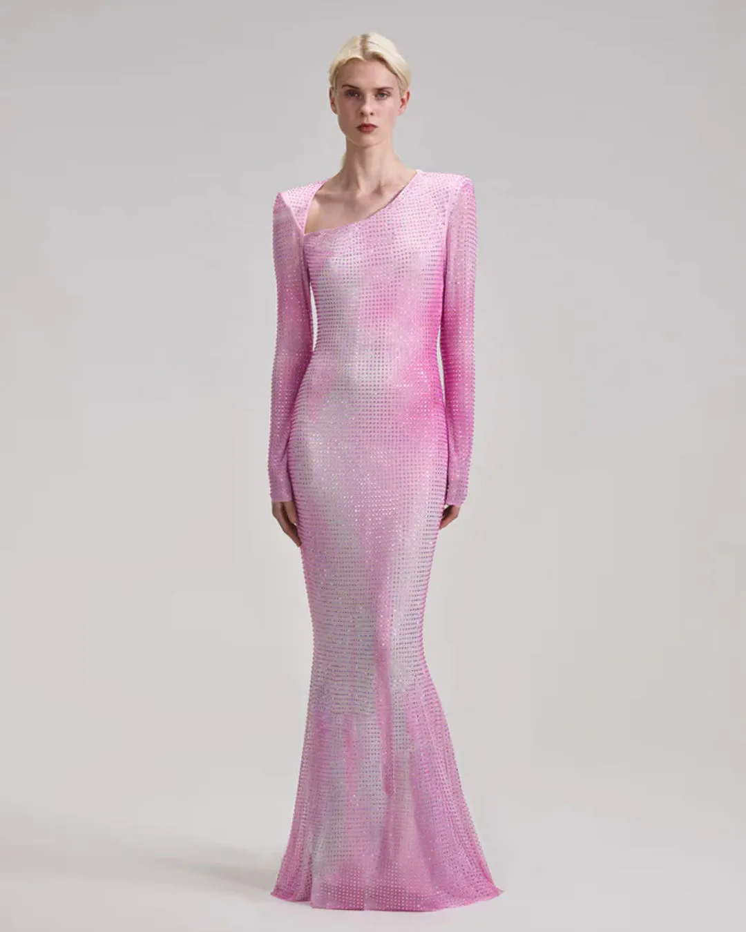 Self-Portrait Pink Contour Flared Hem Maxi Dress, $780