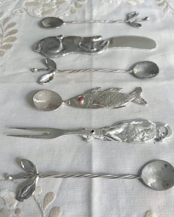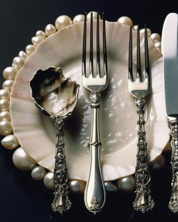 Silver is the perfect accent for a coastal tablescape, reflecting light like the glimmer of waves at sunset. But this season, it’s not just about shine—it’s about irregular, sculptural designs that feel as if they’ve been shaped by the sea itself. From twisting handles reminiscent of driftwood to forks and spoons inspired by ocean creatures, this flatware brings a touch of whimsy while still feeling elevated. Some pieces mimic the scales of a fish, the fluid curves of a wave, or the delicate form of coral, creating a look that’s both organic and artful. Whether polished to a mirror-like gleam or left with a hand-forged texture, these silver details add an enchanting, otherworldly charm to any seaside celebration.