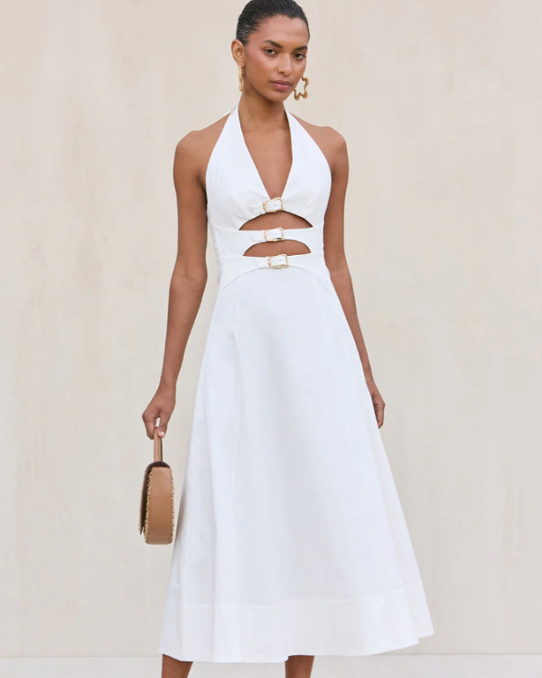 As the sun begins to set and the weekend officially kicks off, the rehearsal dinner is your moment to set the tone. Think earthy textures and shapes that echo the natural surroundings—crochet, linen, raw silk, and sun-bleached tones that mirror the coastline. A structured mini dress or long dress in a woven or open-knit fabric feels both effortless and intentional. It’s a look that nods to the landscape while elevating it. Add sculptural jewelry and strappy sandals to strike the perfect balance between relaxed and refined. This is beachside elegance at its most grounded—and most glamorous.