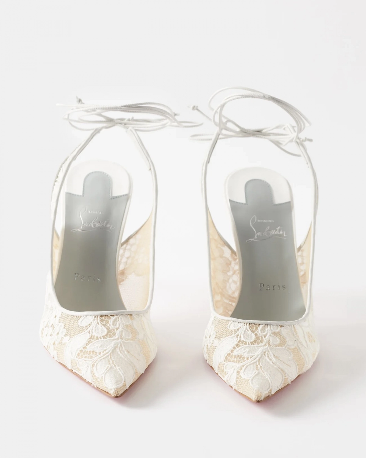 Christian Louboutin Kate 85 lace and leather slingback pumps, $905