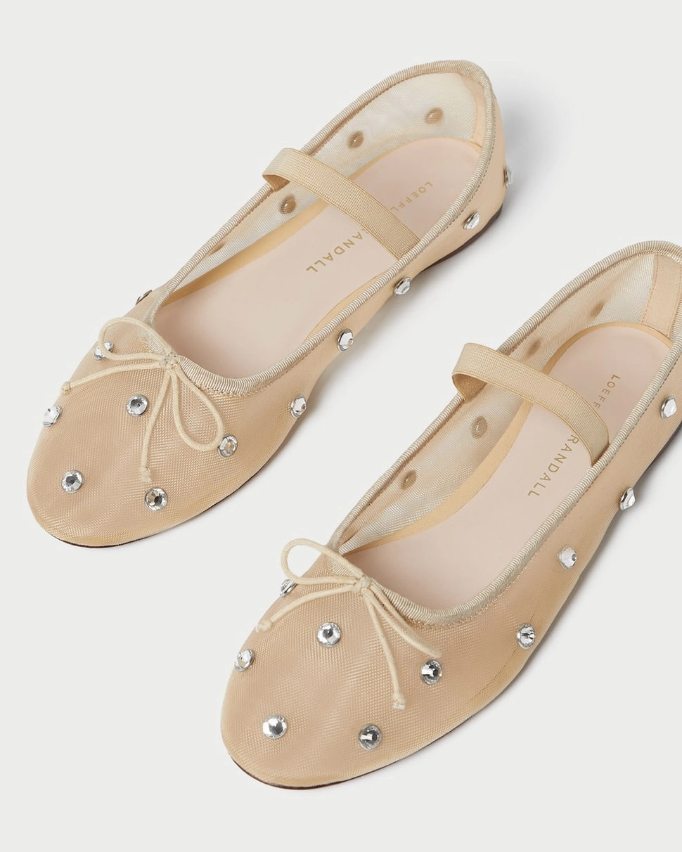 Loeffler Rendall Leonie Caramel/Crystal Ballet Flat, $275