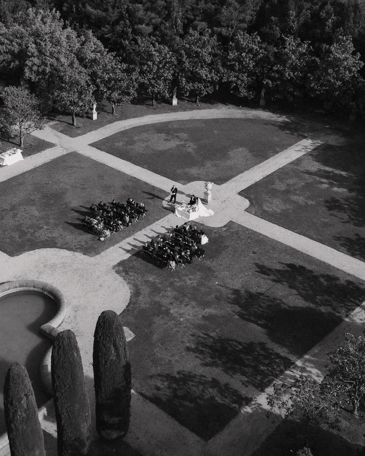 Overlooking the Val d’Orcia landscape, La Foce is arguably one of the most popular Tuscan venues. Its formal gardens, designed in the early 20th century, are among the region’s most photographed, with perfectly cut hedges, architectural lines, and panoramic horizons that only add to the sweeping Italian views. The estate accommodates celebrations of various sizes and invites couples to weave festivities through terraces, shaded pergolas, and rolling lawns.