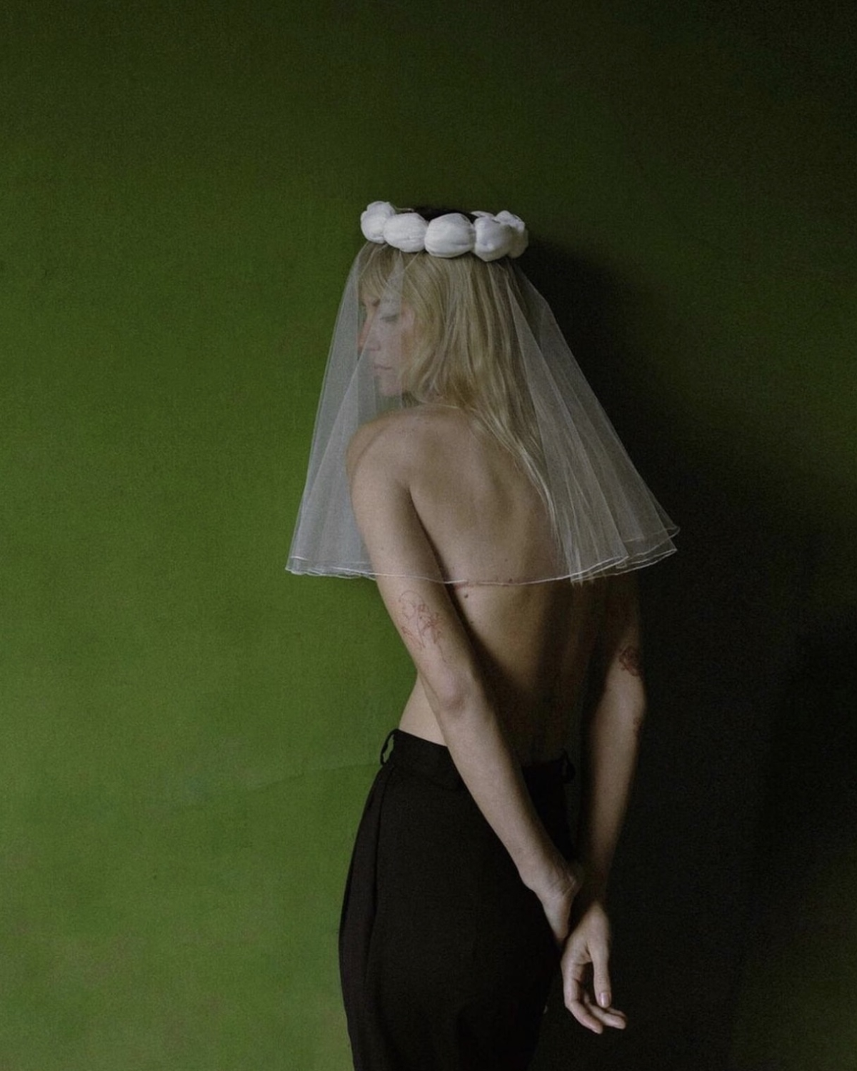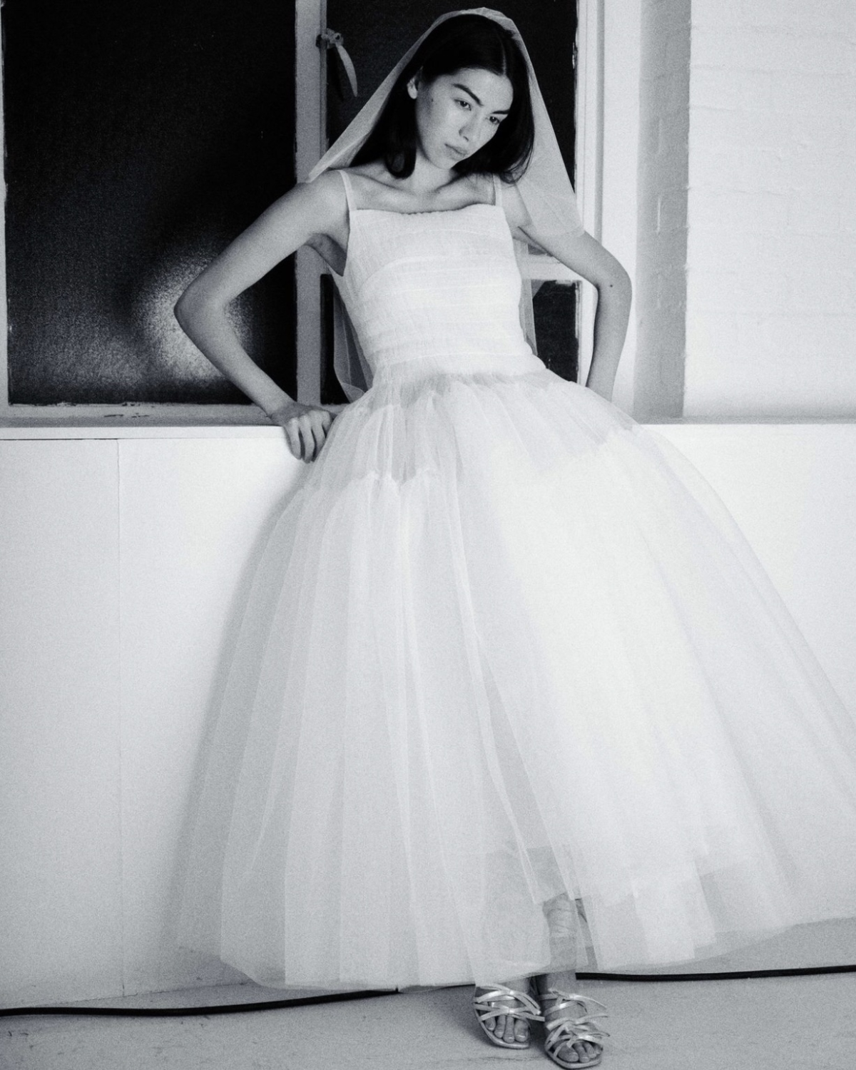 If the style of your wedding look and veil can be described as effortlessly chic, then opt for an equally effortless do. Embrace your hair's natural texture and fall, wearing it down, or as a loose ponytail with a contrasting ribbon. This will give off those cool, effortless French girl vibes, while allowing the veil to capture all the attention.