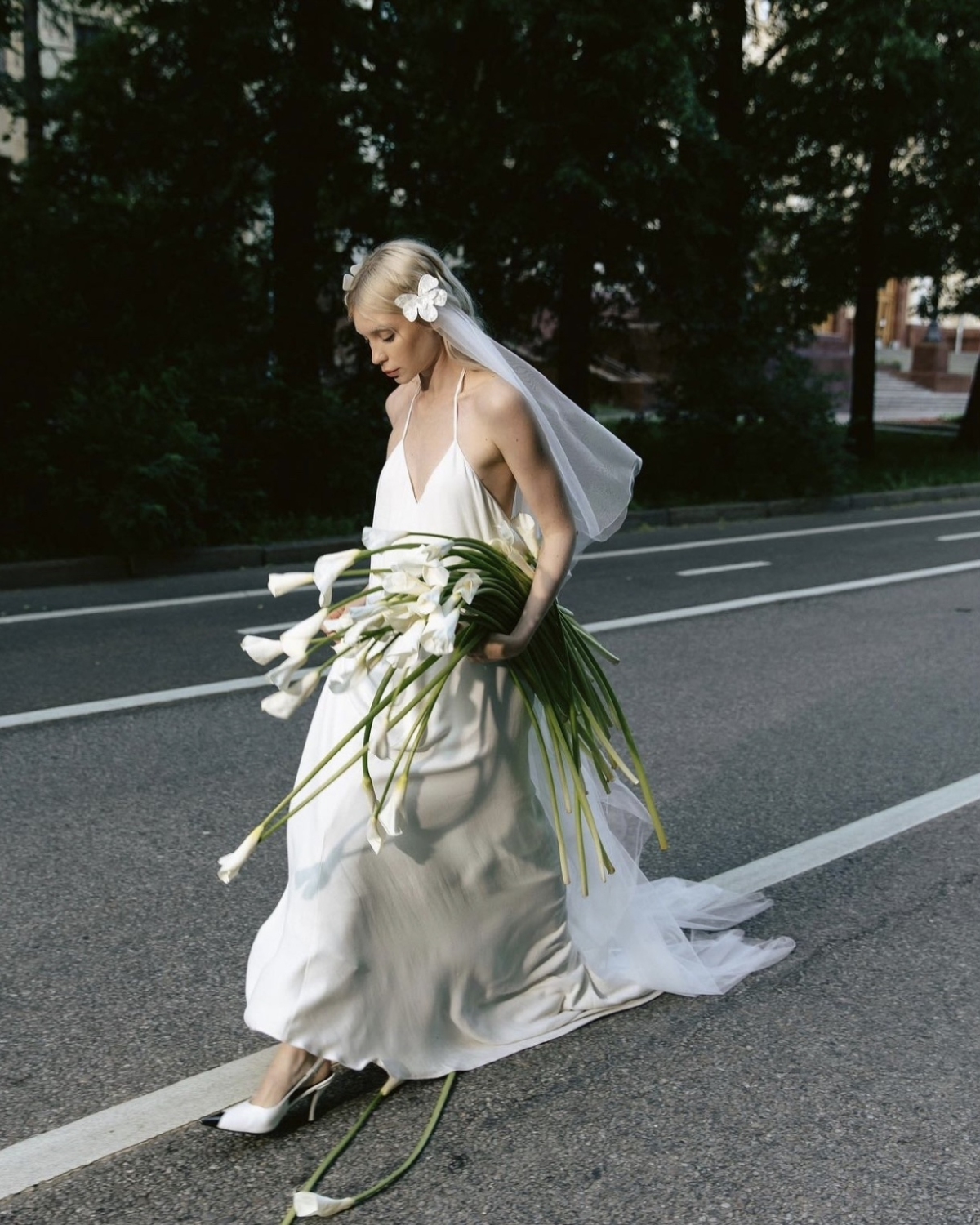 Perhaps one of the most stylish options and a timeless classic among veil hairstyles. Its main advantage is that the hairstyle looks chic with different positions of the veil: you can fix the comb under or over the bun, or simply place the veil over the head. Especially when the hair is tightly styled, the look is flawless and free of flyaways to catch the veil.