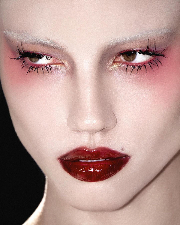 Classic red makeup gets a glossy refresh for 2025. From nail art to eyeshadow and lips, expect to see high-shine, almost lacquered reds that feel bold yet sophisticated. This look pairs perfectly with contrasted minimal makeup, letting the touch of red take center stage.