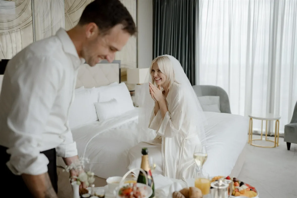 Breakfast in bed at Waldorf Astoria, a bubble bath, an evening at a bar, and a walk around the beautiful city of Berlin. A day full of joy, love, and laughter captured by Haute Weddings. One can hardly imagine a better day to spend with your loved one!