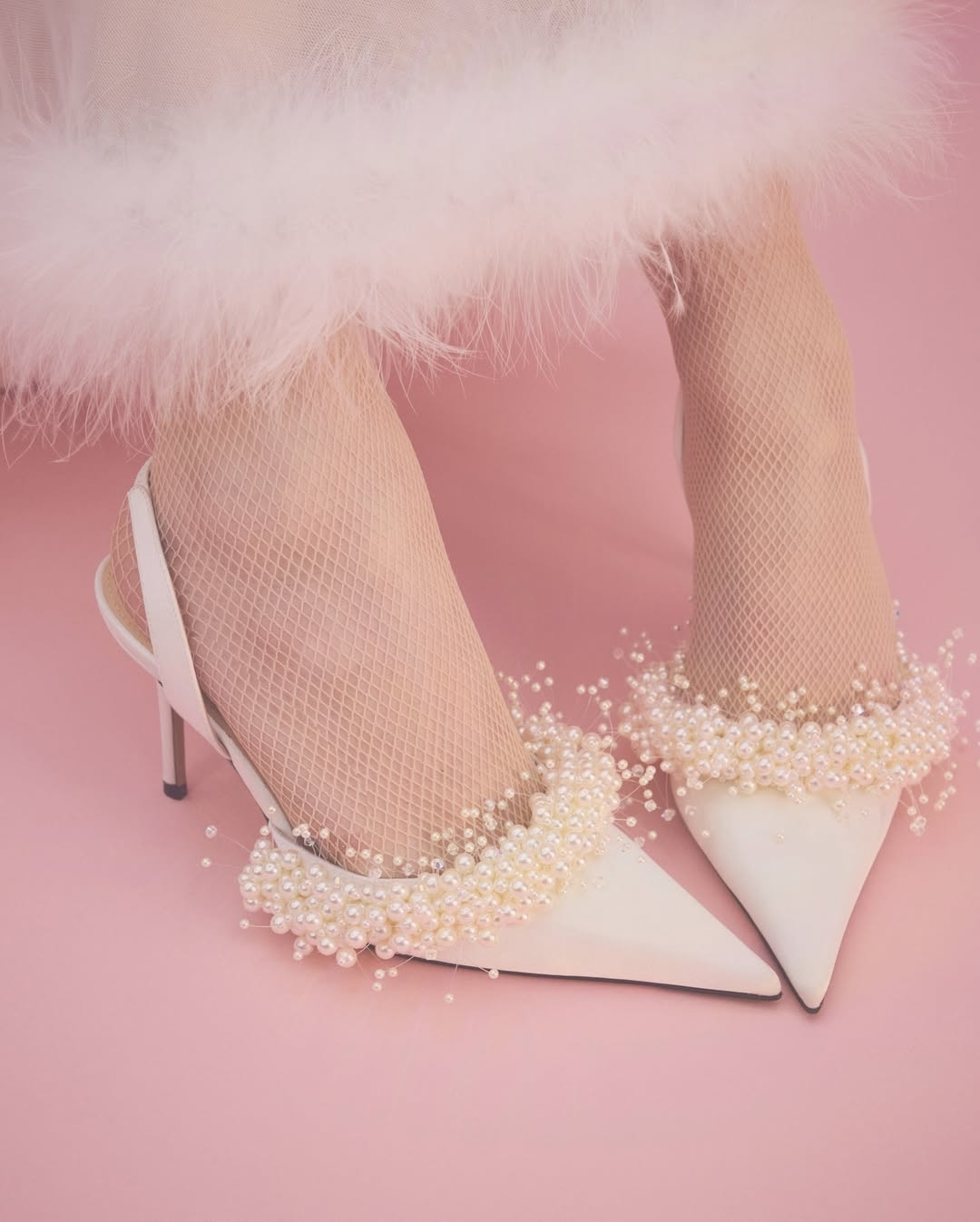 Magda Butrym truly brings a modern, avant-garde touch to bridal footwear. Renowned for her sculptural designs and use of opulent materials, her heels frequently boast distinctive embellishments such as oversized floral appliqués and pearls. Brides seeking a contemporary twist on traditional styles will find that Magda Butrym's shoes are both fashion-forward and timeless.