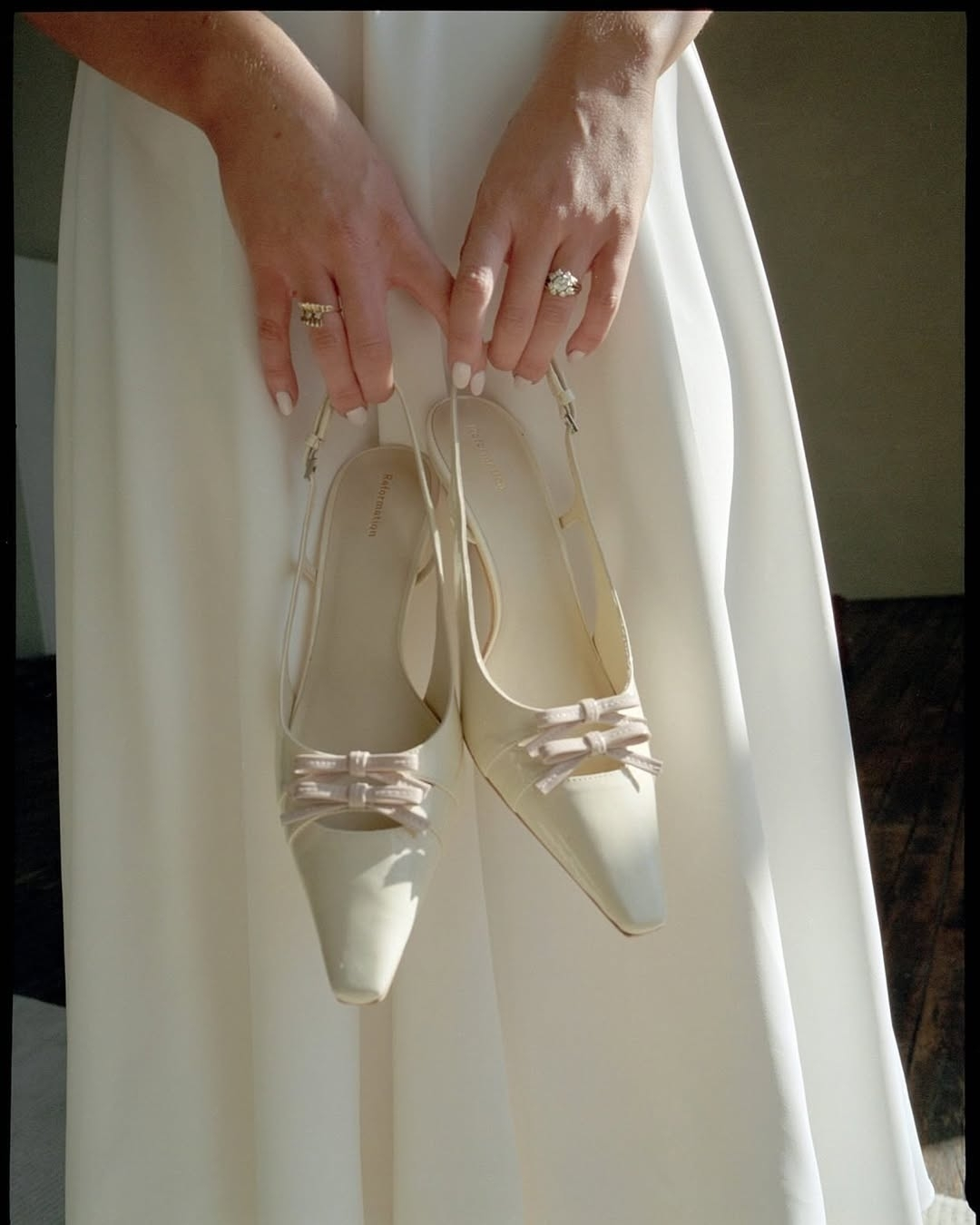 Loeffler Randall’s bridal heels are instantly recognizable for their signature pleated bows and romantic, feminine charm. Thoughtfully crafted with soft hues, textured fabrics, and walkable heel heights, these shoes strike a beautiful balance between comfort and contemporary style. Each pair feels fresh yet timeless, offering a refined touch of whimsy and ease.