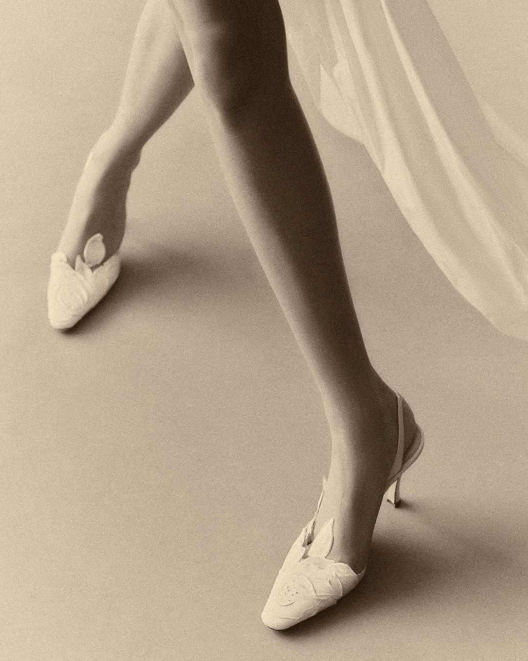 Danielle Frankel’s footwear collection is where artistry meets fashion-forward design, creating unforgettable heels that feel like wearable couture. The collection features sculptural silhouettes inspired by the delicate craftsmanship of the designer's bridal gowns – think romantic pleats, pearl satin finishes, and whimsical petal appliqués that turn every step into a statement. Danielle Frankel’s heels are the perfect choice for the bride who wants her shoes to be as memorable as her dress.