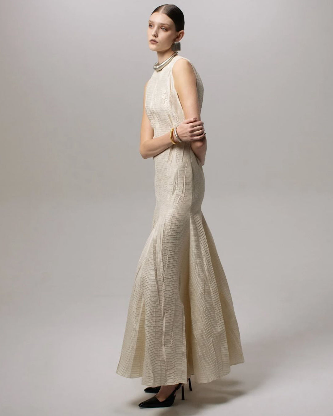 Minimal but never plain, Ukrainian Monetre builds gowns with architectural sharpness and refined ease. Each piece is made to measure, tailored precisely to each bride to let natural beauty lead the design. Fabrics are chosen for their movement and structure, creating silhouettes that balance precision with fluidity.