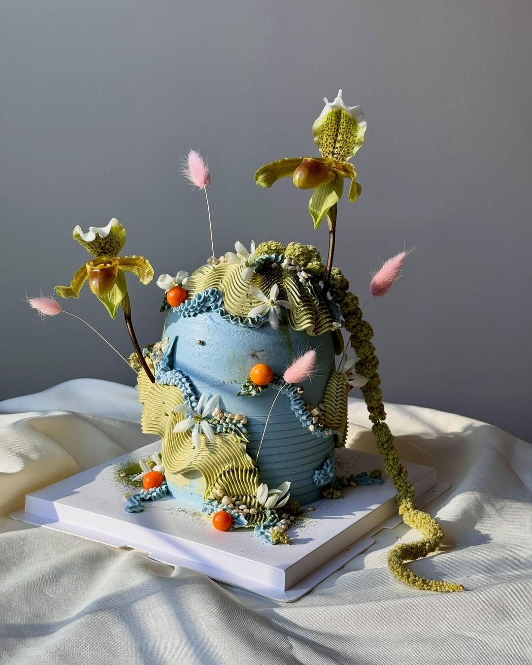 Bella, the baker behind Dreamy Figs, creates surreal, dreamlike sweet treats that are both whimsical and captivating. From bold, fruit-adorned delights to delicate confections blooming with flowers, her desserts offer a perfect balance of color, elegance, and flavor to please every taste. Her cakes, adorned with thick, textured piping and rooted in traditional techniques, exude a playful yet modern flair that makes each creation truly one of a kind.