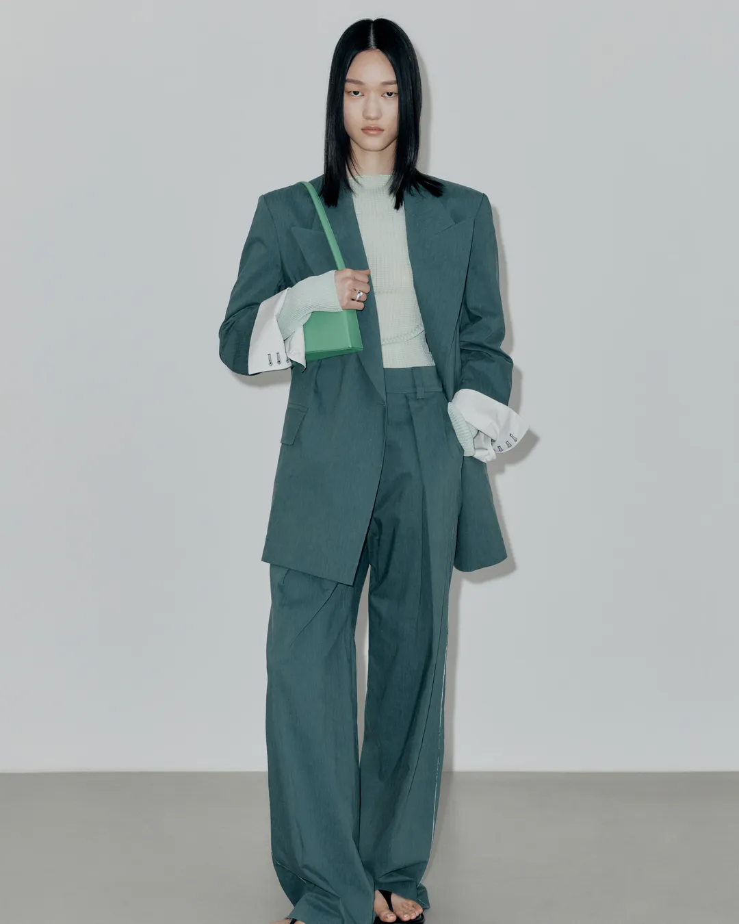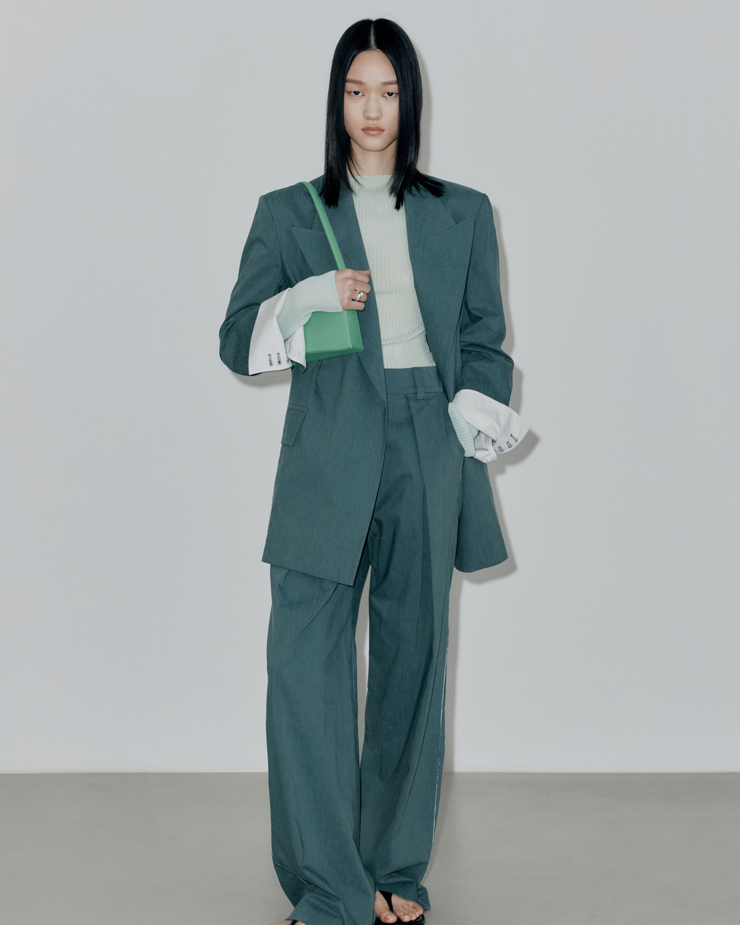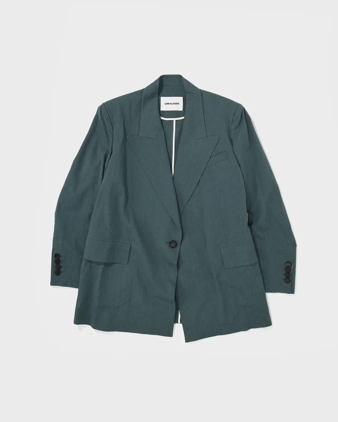 Low Classic Raw-Edge Point Blazer in Deep Green, $310