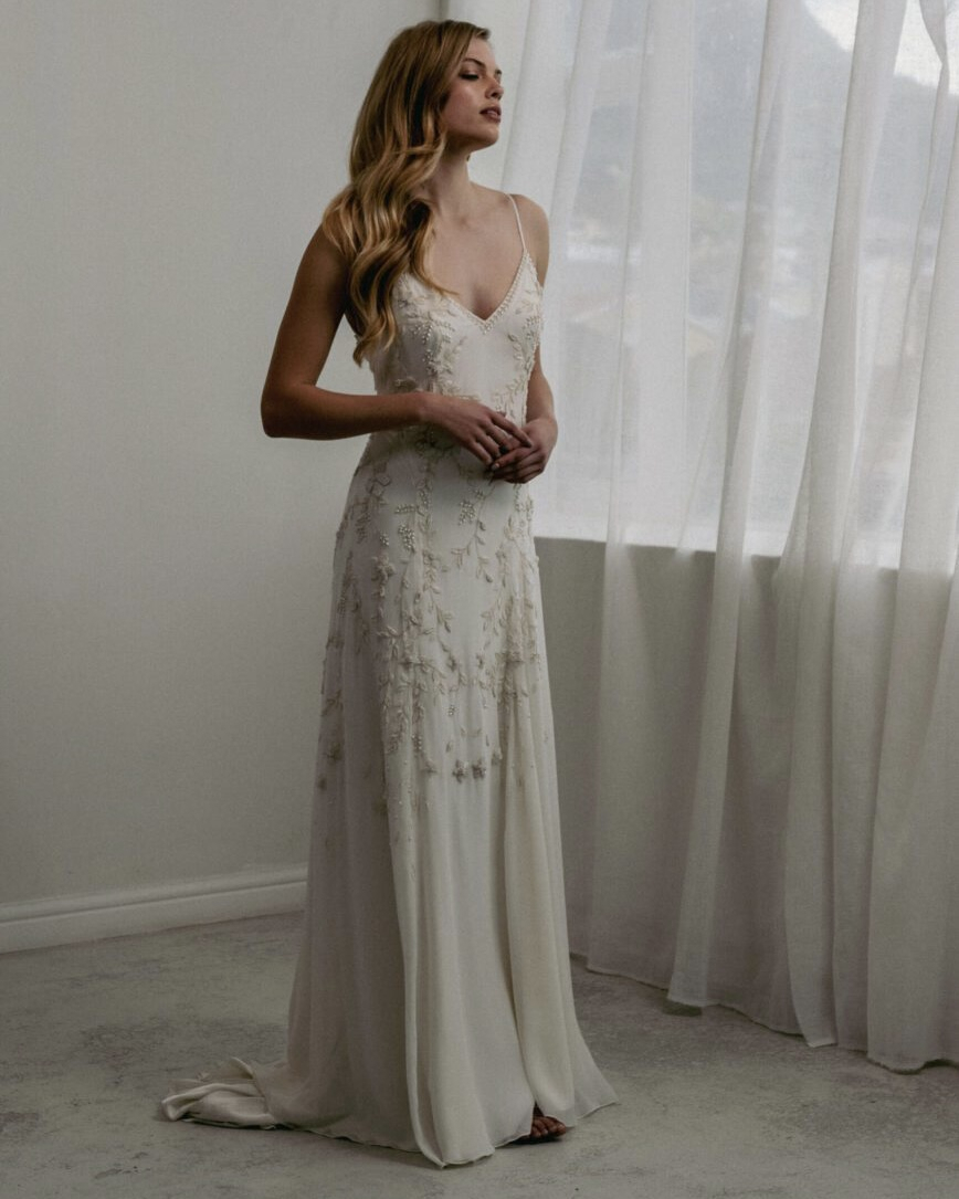 This neckline might become your favorite after selecting a wedding dress! Elegant and timeless yet distinct — a squared neckline on a wedding gown accentuates the beauty of your figure and bust without being overly revealing or uncomfortable. This design lends itself to many classic dress styles, ensuring your bridal appearance is both memorable and sophisticated.