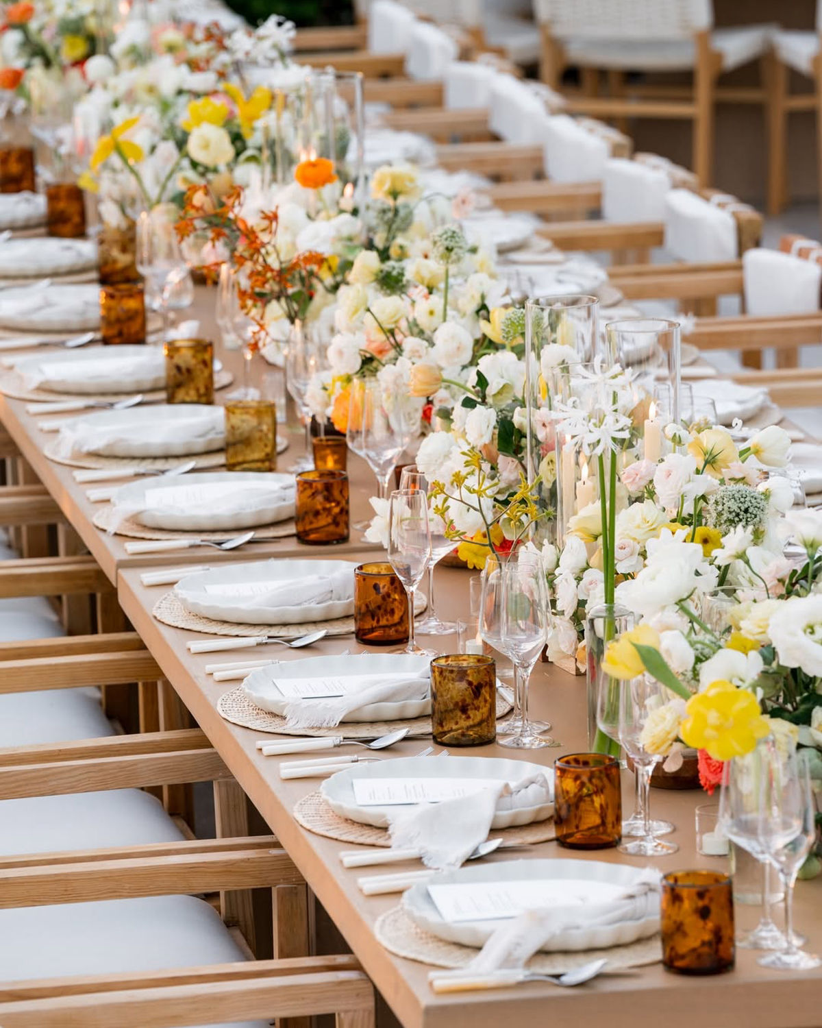 Marianna Idirin transforms spaces into fully realized worlds shaped by light, texture, scent, and sound. Working closely with her tight-knit team, she approaches every event as a sensory story waiting to unfold—meticulous, immersive, and designed with an almost cinematic approach. Based in Los Cabos but forever in motion, Marianna Idirin brings her signature eye and detail-obsessed process to celebrations across the globe.