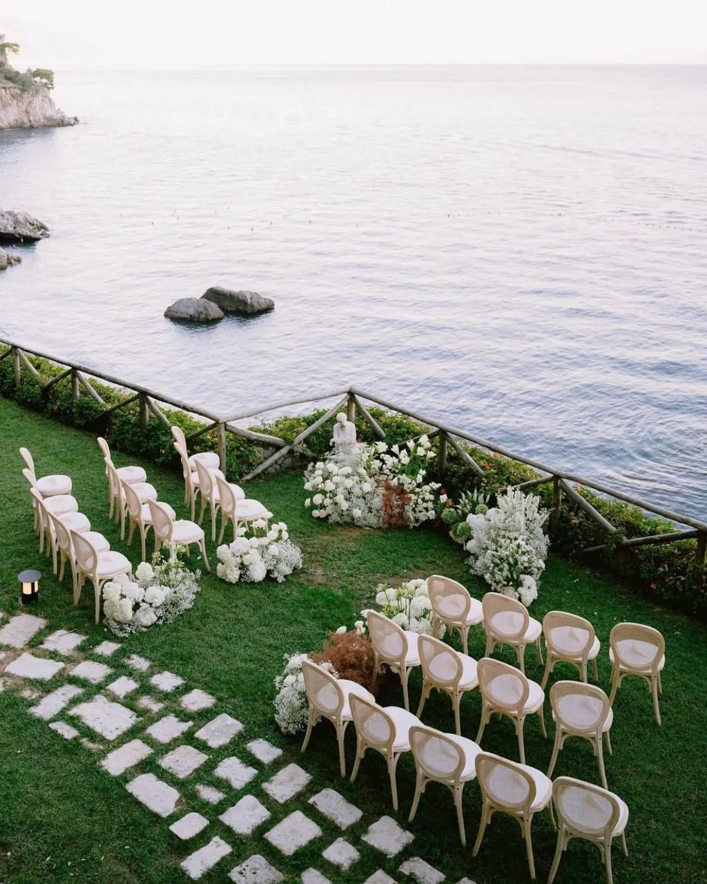 A modern and elegant venue can be another beautiful place for your wedding on the Amalfi Coast. The incredible big green terraces of this location are located on the picturesque white cliffs and overlook the sea. The private beach can be an additional location for the ceremony, as well as a wonderful relaxation area before and after the wedding.