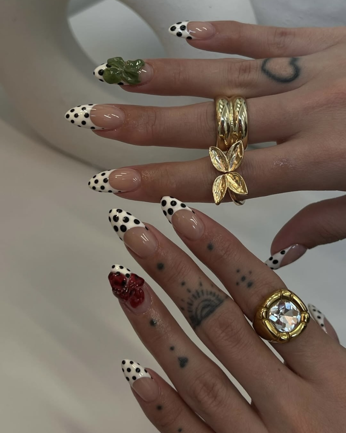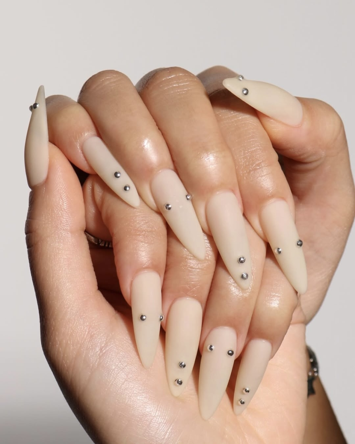 Bold, pierced nails are quickly becoming the go-to statement manicure for modern brides. Defined by metallic dots that mimic piercings, this nail trend strikes a balance between minimalism and rebellion. A nude base keeps the look refined, while brighter or more unexpected colors push it firmly into editorial territory. The beauty of pierced nails lies in their versatility – they can appear soft and sculptural or bold and subversive, depending on how they are executed. For brides looking to break away from tradition without sacrificing elegance, this trend makes a bold statement.