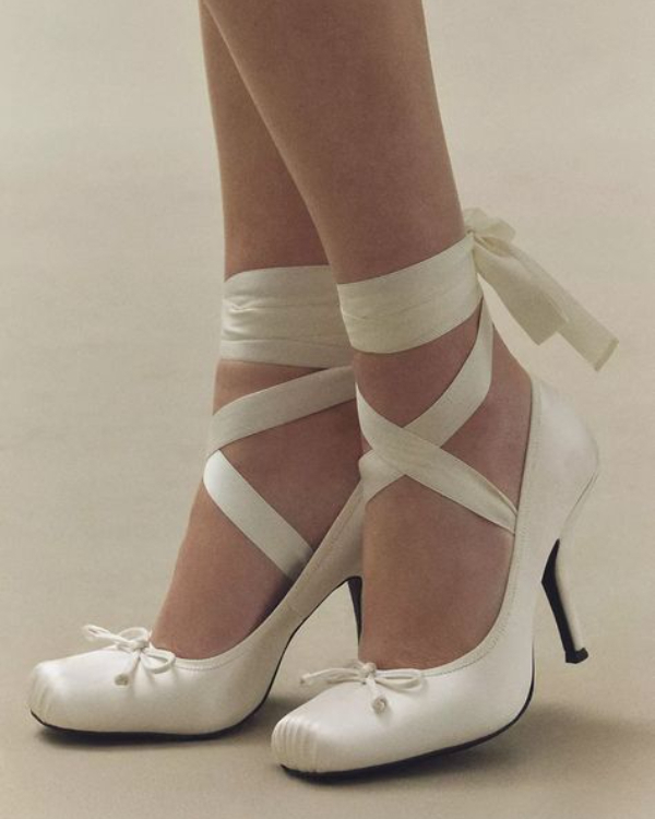 Channel your inner ballerina with heels wrapped in thick, luxurious ribbons. Whether it’s a sandal or a pointed pump, this old-world detail feels fresh and romantic. It’s a graceful look with just the right amount of drama. This trend reflects the revival of trends that incorporate historical themes, like Rococo and Medieval looks, which have gained popularity this upcoming year.