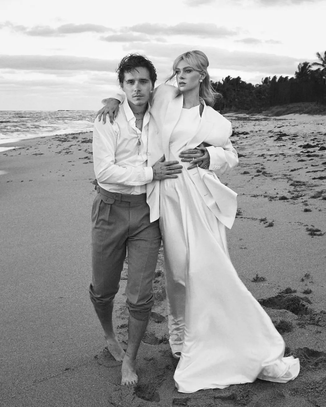 For a beach ceremony, flat shoes and thick, stable heels or wedges are more suitable. In addition to being comfortable, they are also an otstanding stylish option. In order not to get your feet wet by the ocean, put on trendy rubber boots or flip flops, for example. The same can be on the groom.