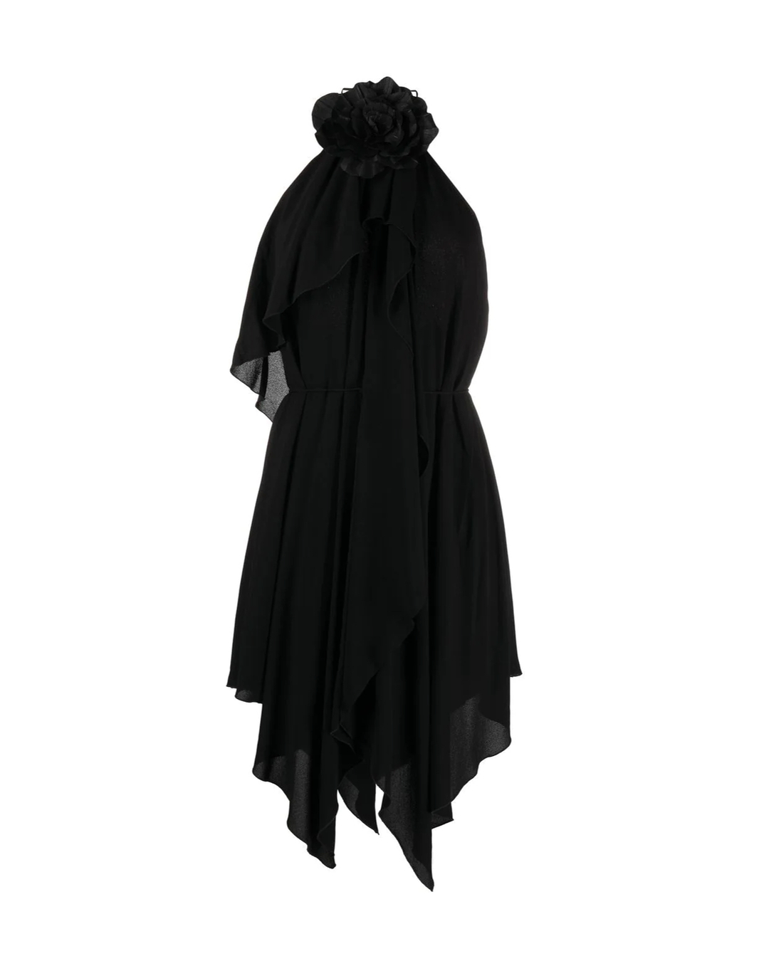 Blumarine Pointed-Hem Floral-Neck Dress, $678