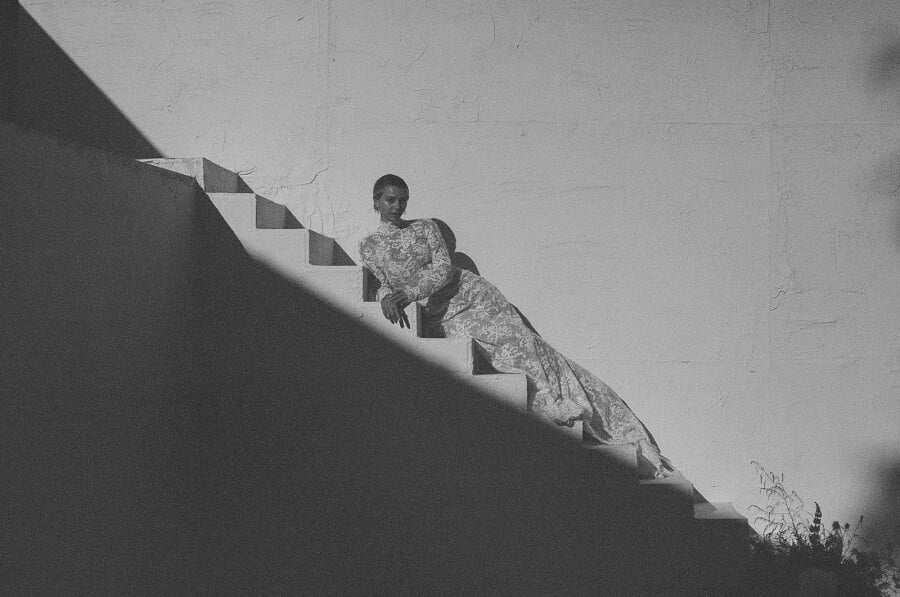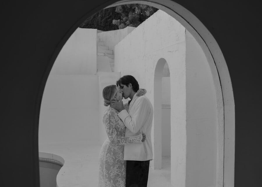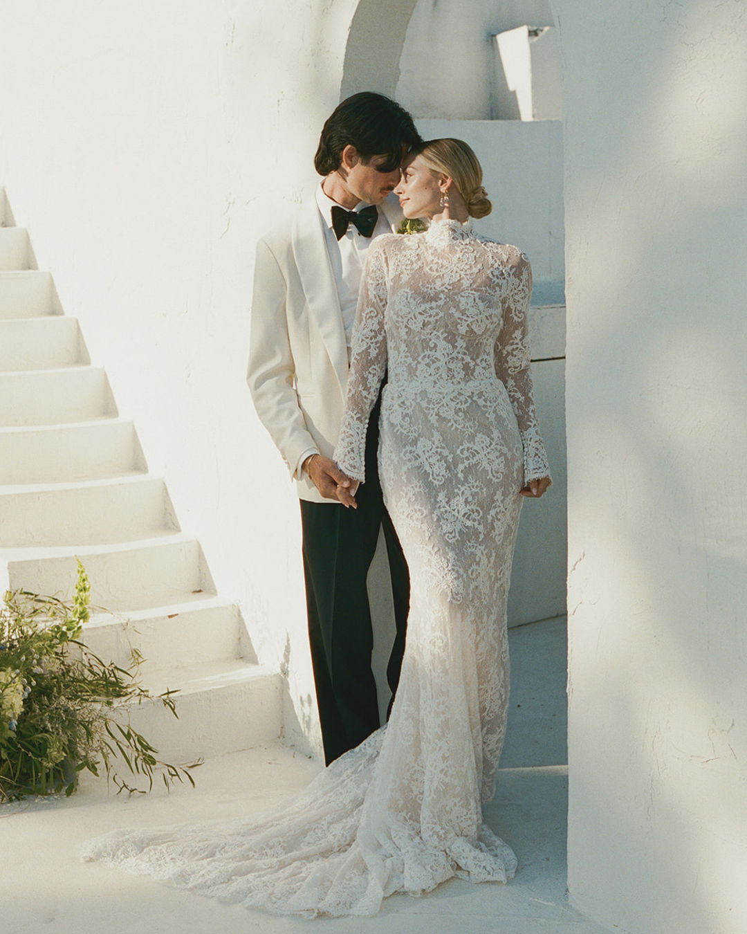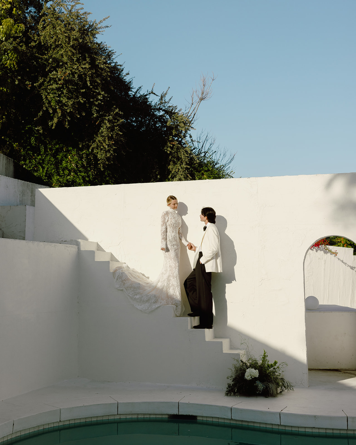 A Santorini-inspired vision meets a Californian spirit, weaving a timeless yet modern wedding story. Orchestrated by planner Moon Realm, the white-washed editorial fuses the simplicity of the venue with bold, overgrown foliage, effortlessly balancing the modern with the organic.