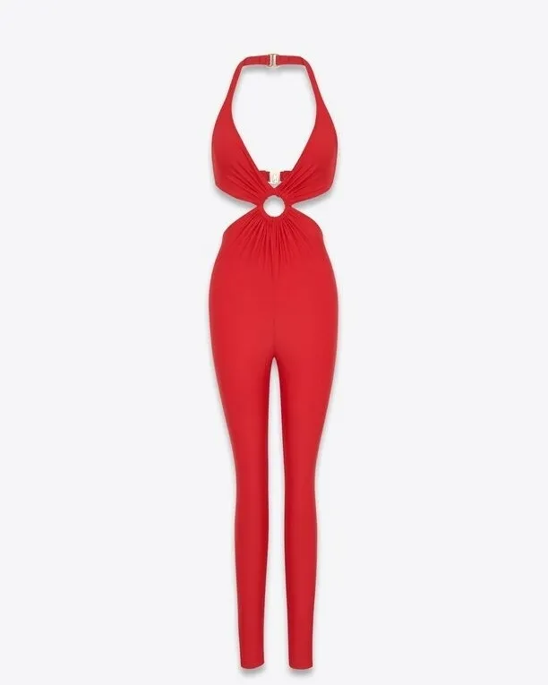 Saint Laurent YSL-plaque bandeau cutout jersey jumpsuit, $2,990