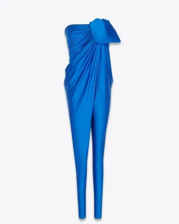 Thanks to Saint Laurent and Balenciaga (and Kim Kardashian, of course), catsuits are ultra-trendy again. You might see this body-hugging silhouette on high-fashion catwalks, red carpets and streets. Now it is time to bring it into the wedding dress code! Brides who are tired of traditional dresses and guests who want to stand out from others at the wedding, this trend is for you. An extravagant Norma Kamali catsuit or a cheeky Saint Laurent look? Choose your favorite below!