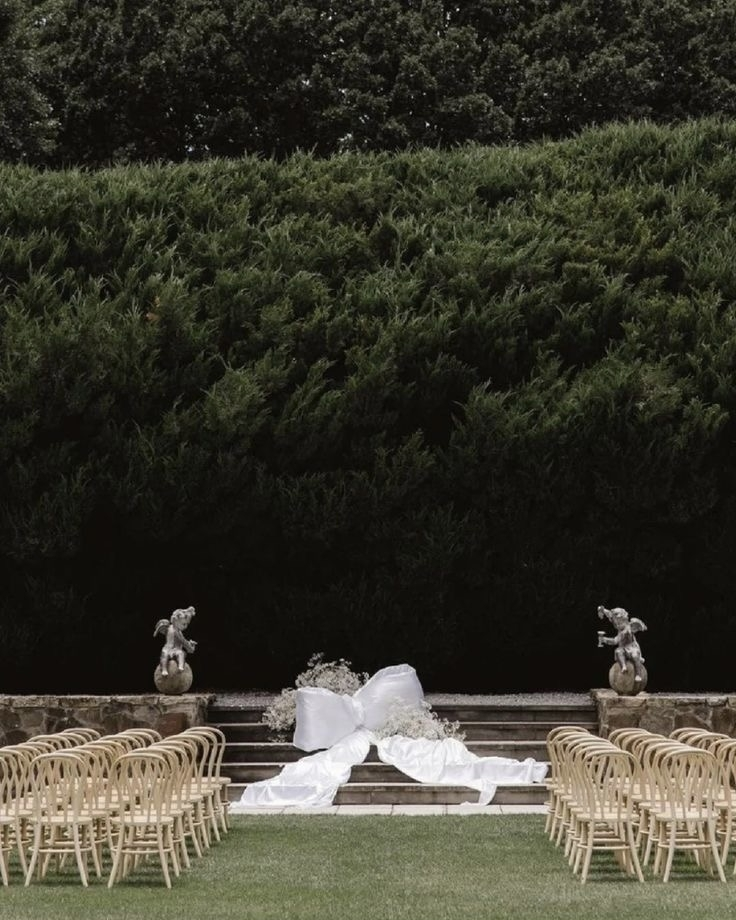 Here they’re again! Bows bring a touch of whimsy, charm, and romance to your special day. Large, dramatic bows made from satin, tulle, or silk create a stunning focal point, adding a playful yet elegant twist to the ceremony space. Whether you opt for a single, oversized bow or a series of cascading ribbons tied into delicate bows, this backdrop idea infuses the setting with a sense of celebration and joy.