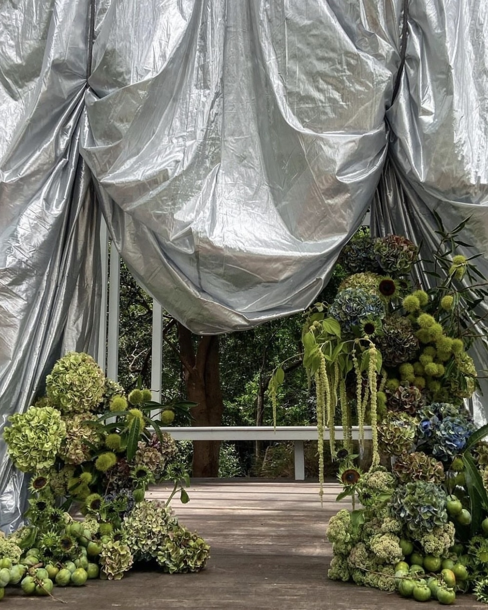 This backdrop choice is incredibly versatile, fitting seamlessly into both chic urban weddings and a modern contrast for to the romantic greenery of garden celebrations. Metallic accents can be combined with other textures, like velvety fabrics, lush florals, or greenery, to balance the sleek shine with a touch of softness. Whether draped in layers for a dramatic effect or hanging in simple, elegant lines, metallic drapery offers a bold yet refined aesthetic that elevates your ceremony.