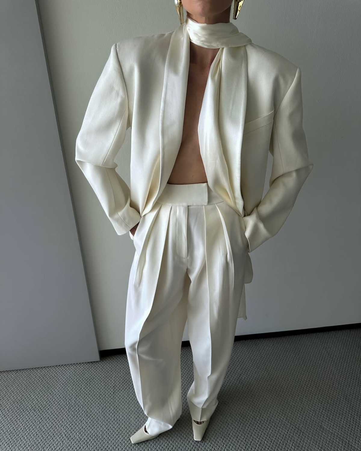 Wide-leg pants. Crisp blazer. Statement earrings. There’s something undeniably bold—and incredibly stylish—about showing up in a perfectly cut pant suit. Sharp tailoring is essential here, but don’t be afraid to add your own spin—a hint of pink, an unexpected shoe, or a barely-there bralette underneath. It’s giving confidence, not stylistic compromise.