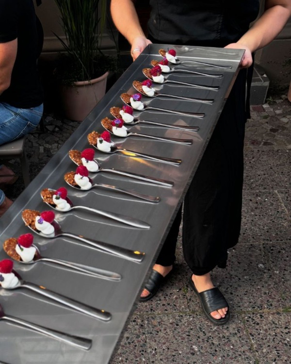 For a fun and modern approach, serve desserts in chic individual spoonfuls, offering guests a bite-sized experience of indulgence. This presentation is perfect for rich, decadent treats like mousse, panna cotta, or crème brûlée, eliminating the need for plates or multiple utensils. The stylish display adds a touch of sophistication while keeping things interactive and easy to enjoy.