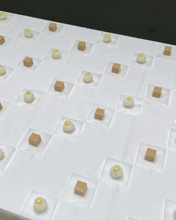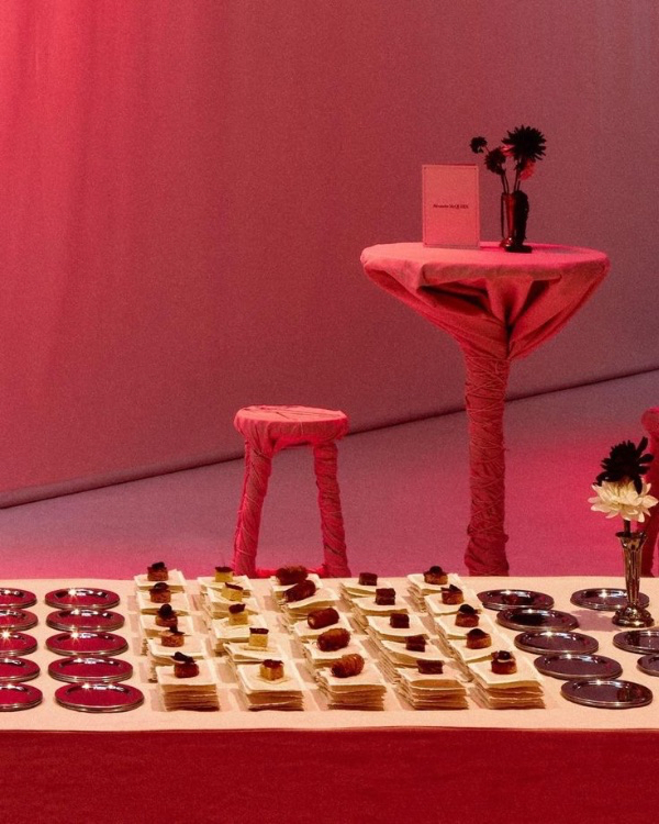 Arranging desserts in perfectly neat rows, diagonals, or symmetrical patterns creates a visually satisfying and polished display. This structured approach adds a sense of order and sophistication, making even simple treats look intentional and high-end. Whether it’s meticulously aligned rows of macarons, small pastries arranged in a checkerboard pattern, or perfectly spaced mini cakes, this styling method delivers a modern aesthetic that feels both refined and effortlessly chic.