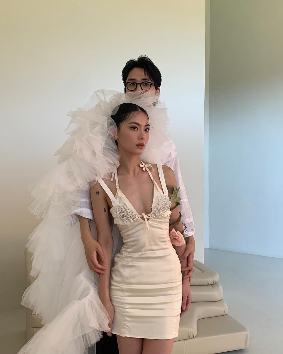 For the couple who just ooze that 'it couple' style—an undeniably cool aura that can make any look an iconic moment. For the brides, it’s all about accessorizing. Style a micro mini or oversized blazer with a voluminous statement veil, chic kitten heels, and a little something extra special, like a pearl clutch or layers of jewelry. For grooms, opt for a casual suit layered with a t-shirt, or simply a silk shirt with trousers, completed with dress shoes or loafers. A perfect look for an intimate, casual wedding or a civil ceremony while also being a budget-friendly option.