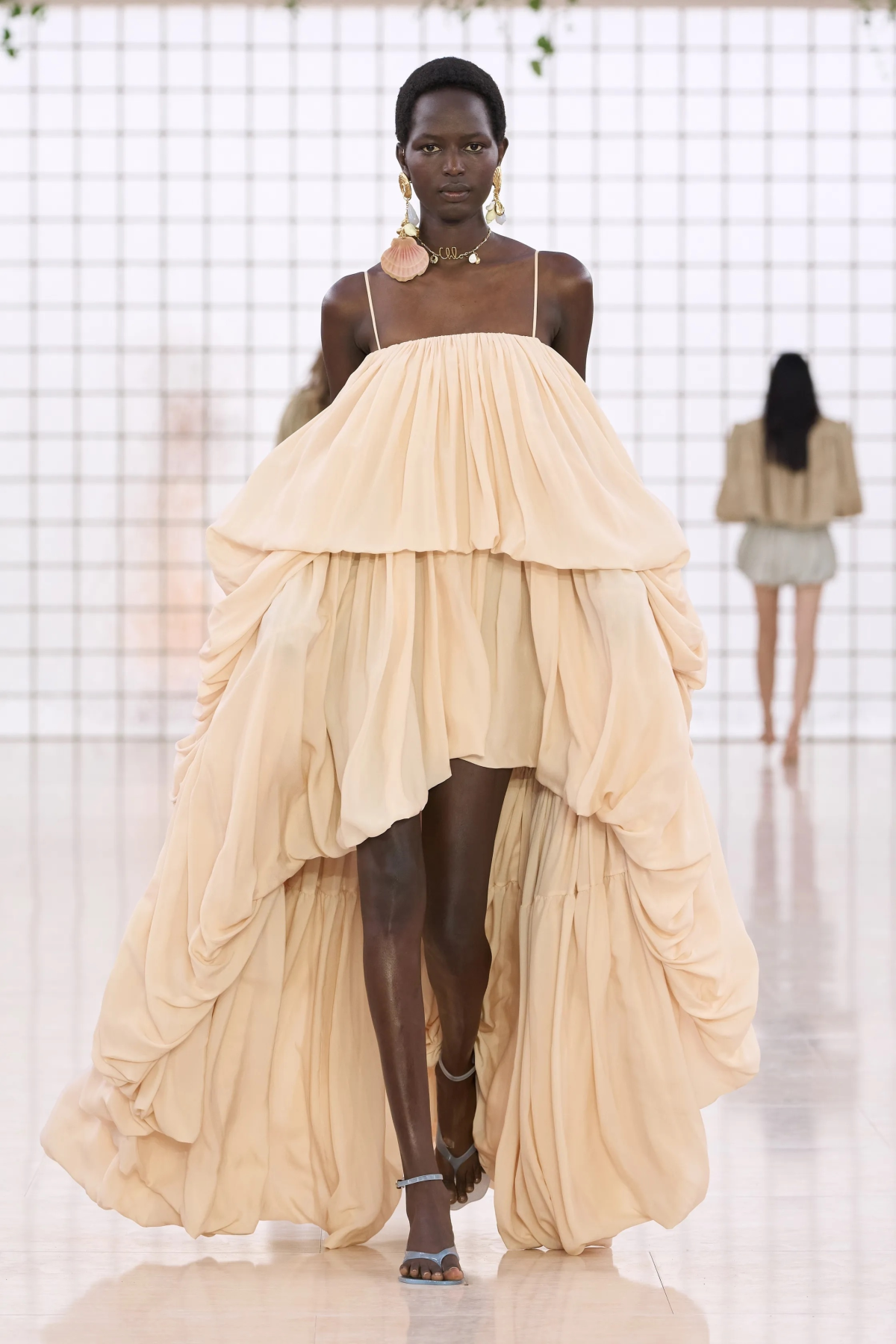 At the heart of the Spring/Summer 2025 "Freedom Collection" is a sense of freshness and lightness, translated through sheer fabrics and dynamic silhouettes. Puffy-sleeved blouses, playful balloon shorts, dramatic dresses in rich floral prints, and crocheted pieces all echo the joyful energy of an endless, sun-soaked summer vacation.