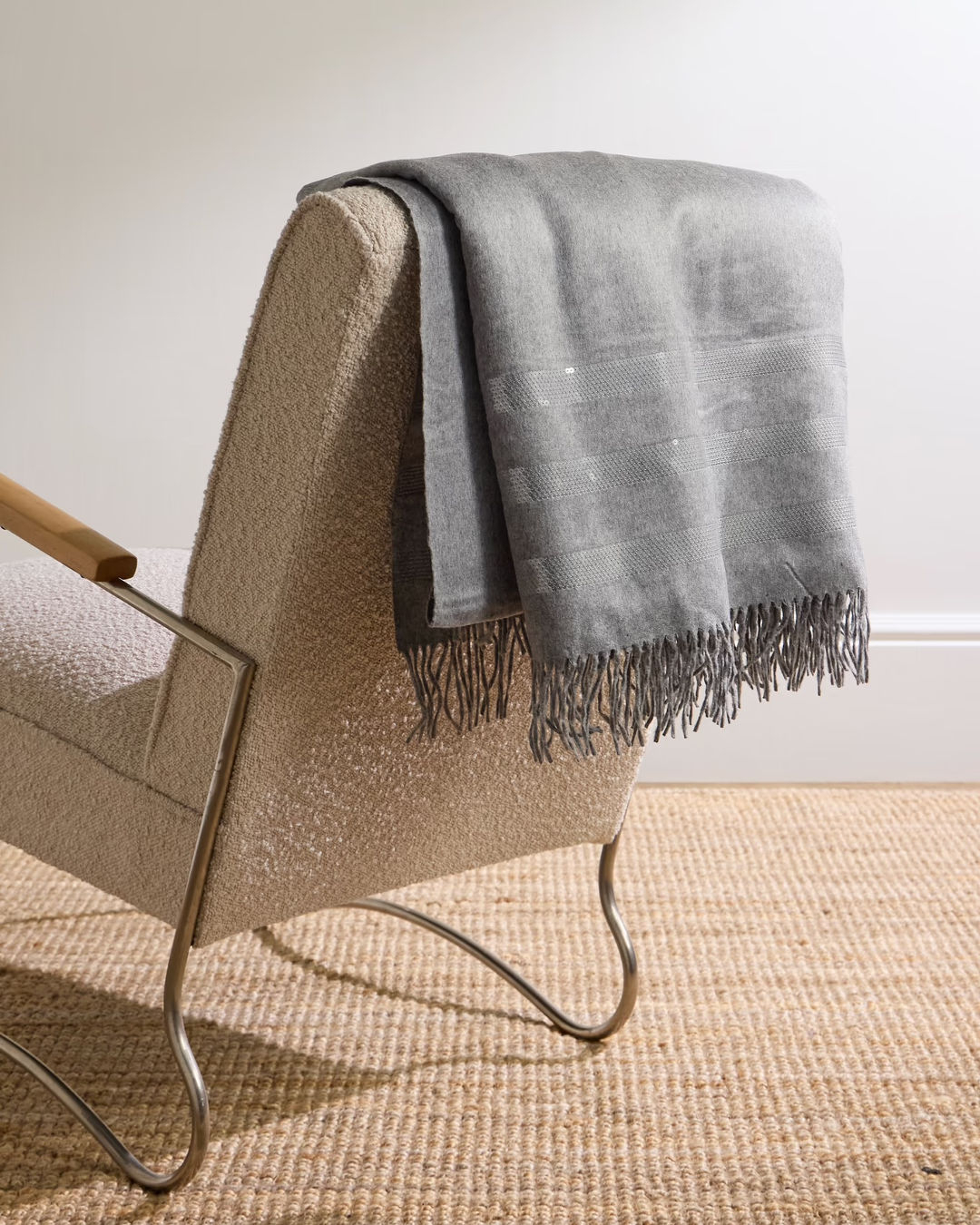 Brunello Cucinelli Fringed Sequin-Embellished Striped Silk Throw, $2,350