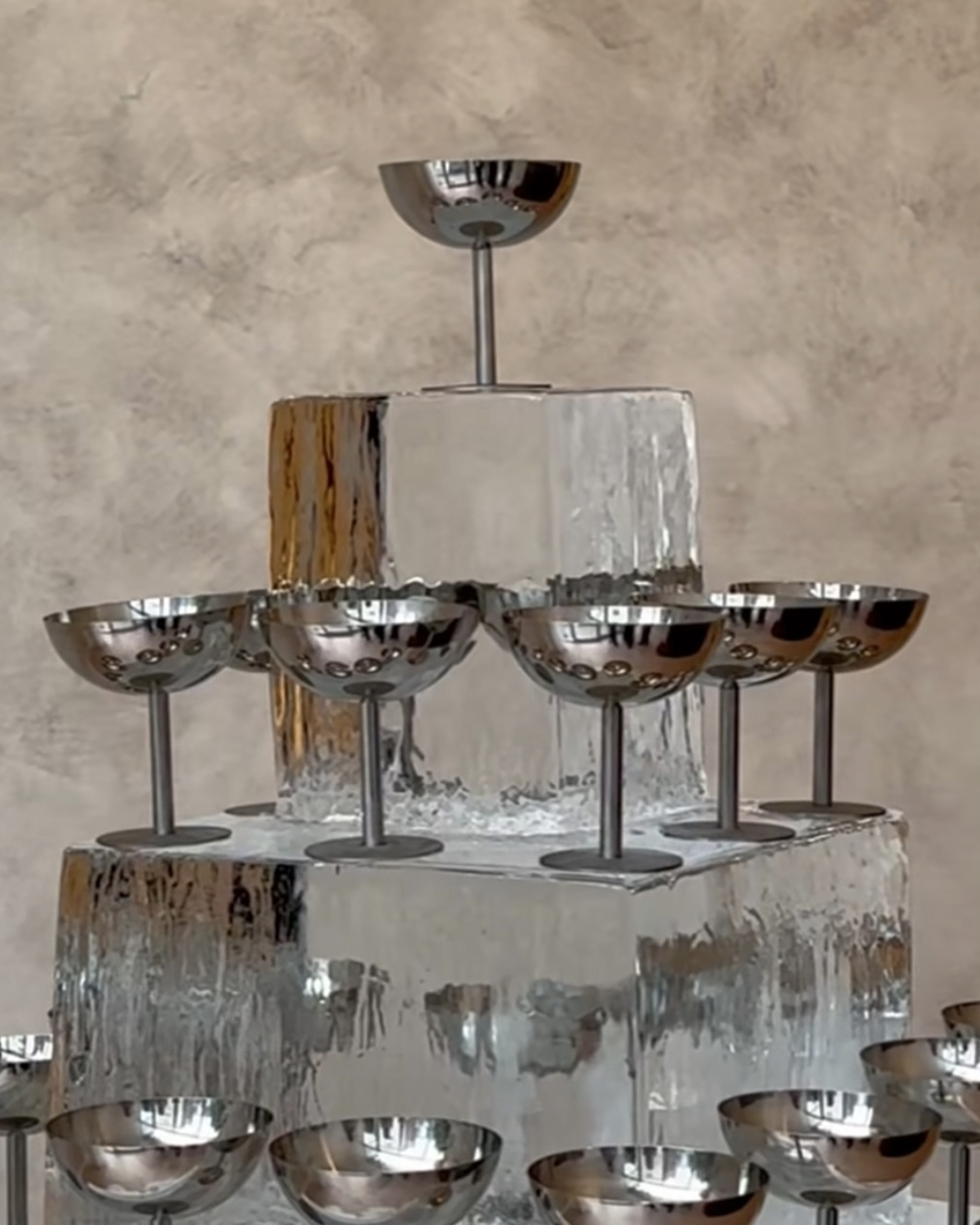 Introduce a stunning visual twist to your wedding with uniquely shaped ice or ice cubes adorned with custom inscriptions and intricate patterns. Consider adding flowers or frozen olive cubes to specialty drinks for an extra touch of elegance. Imagine the delight of your guests as they discover these artistic frozen details in their glasses—it's a small touch that makes a big impression. This creative twist not only enhances the aesthetic of your drinks but also adds a personal, unforgettable element to your celebration.