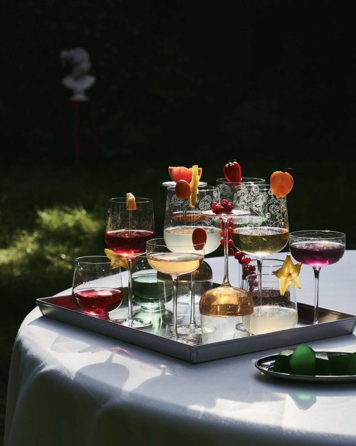 Enhance your wedding drinks by serving them in sculptural glassware. Each unique piece, from fluid twists to abstract forms, turns your cocktails into captivating visual masterpieces. Imagine the deep, vibrant colors of your signature drinks artfully displayed in these distinctive vessels—it’s a statement of panache and creativity that’s sure to impress your guests.