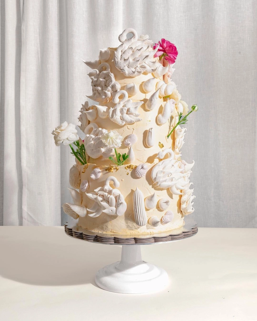 The wedding day is a kaleidoscope of beautiful and memorable moments, from the bride's grand entrance and emotional vows to heartfelt family toasts and the charming first dance. But let's be honest, there's one particular highlight that everybody looks forward to just as much. Yep, we are talking about the wedding cake! When choosing a dessert for your big day, we encourage you not to shy away from unusual, perfectly imperfect options too. Playful, at times childish, cake designs with lots of decorative detailing (think bows, flowers, creative lettering) are so much on trend right now. They look fresh, stylish, and promise to add that extra "wow" effect to your dream celebration. Scroll through to get inspired by modern, cool, (and maybe a bit crazy!) cake design ideas.