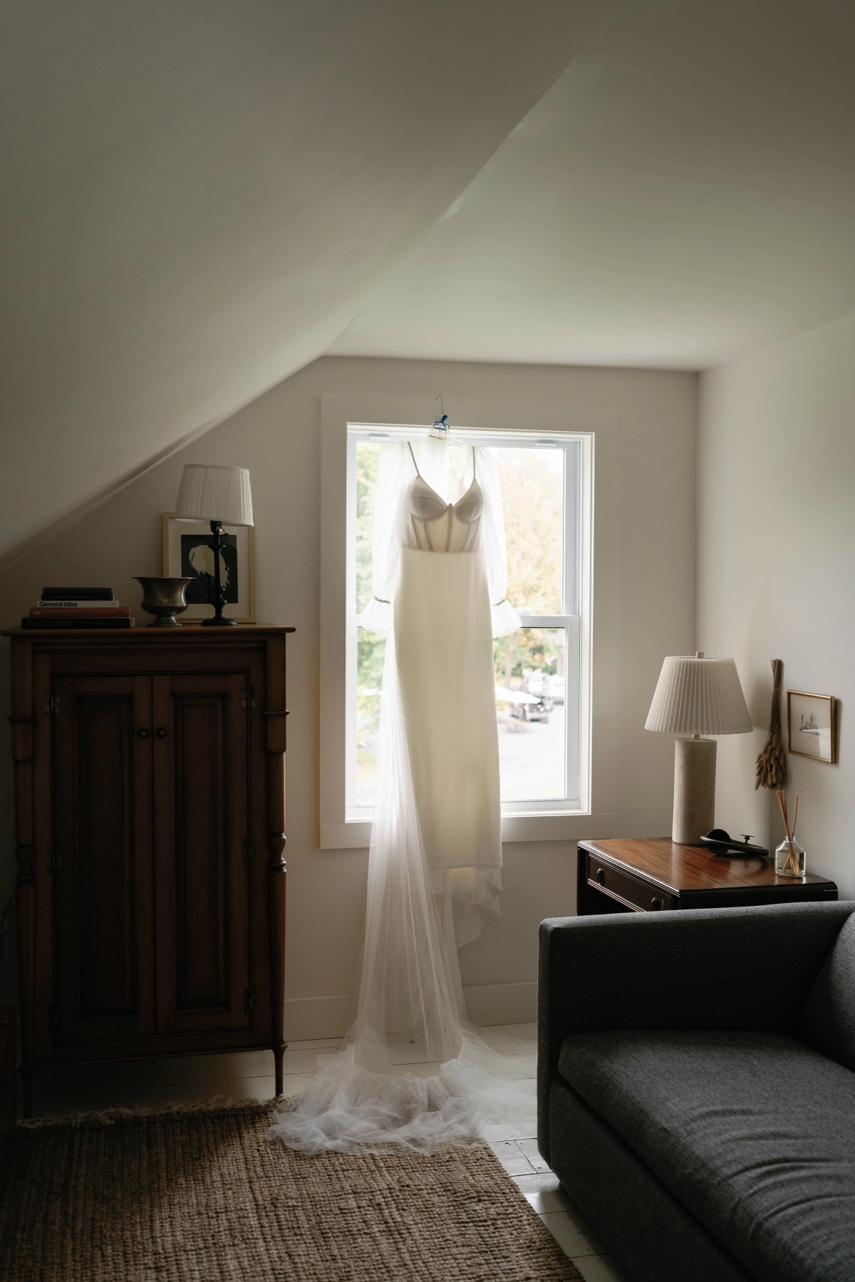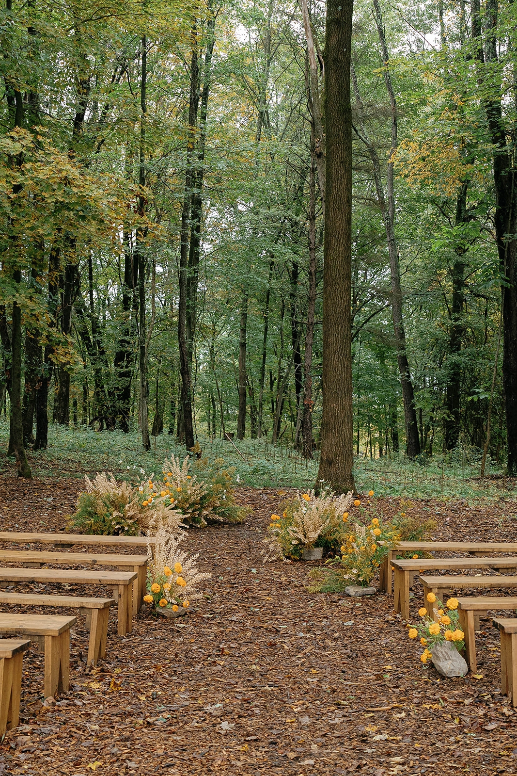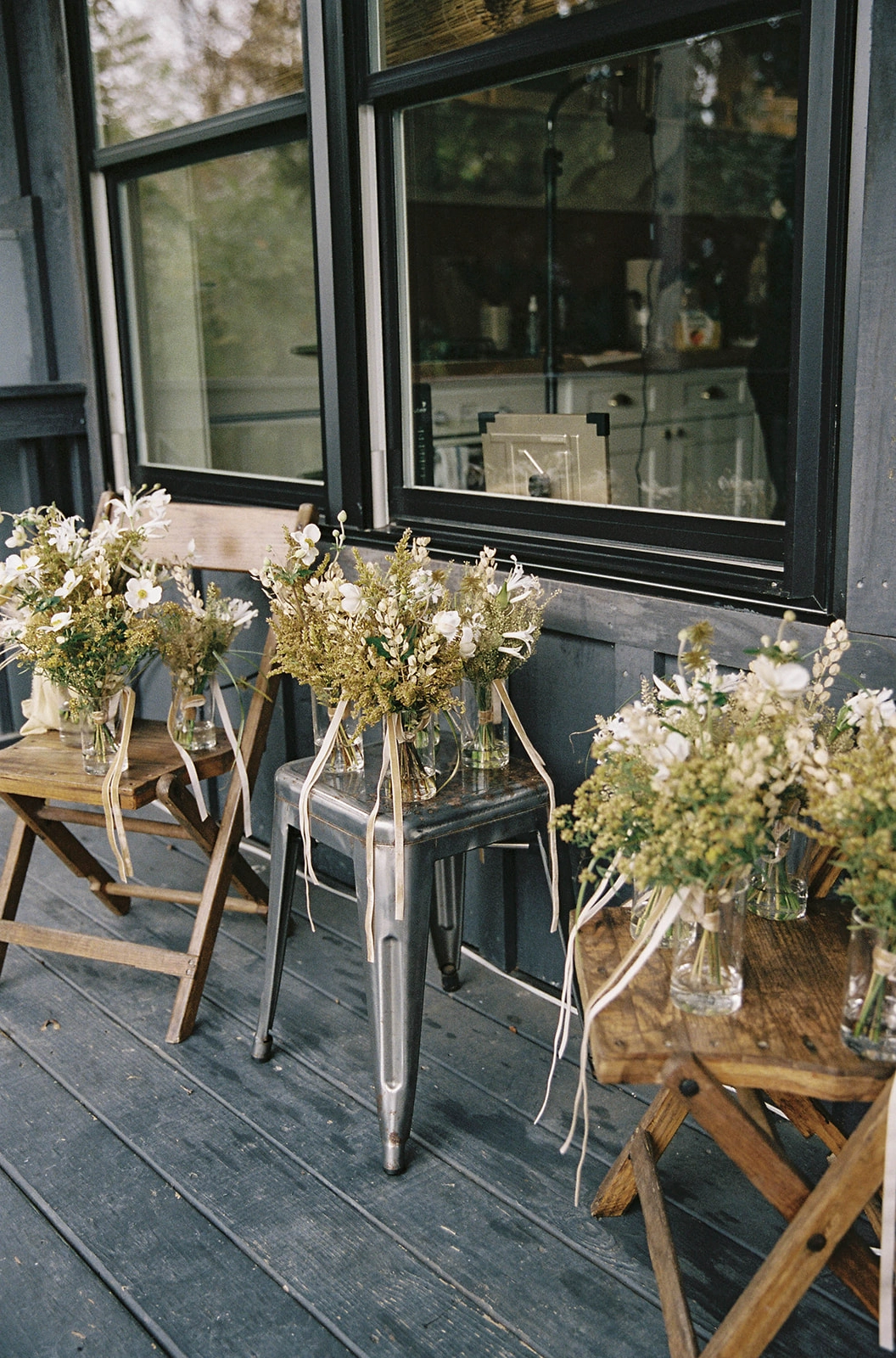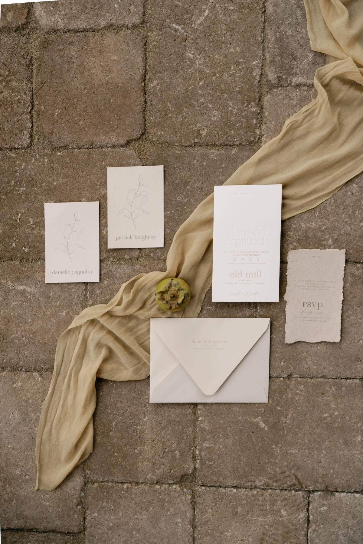 One of the standout features of the wedding was the florals, meticulously crafted to reflect the landscape of the Old Mill Guesthouse and the surrounding Upstate New York region. The arrangements featured thoughtfully curated and art-forward installations with foraged branches, stones, dried grasses, and golden blooms. The colors and textures of the venue and carefully chosen details by the couple blended together effortlessly.
