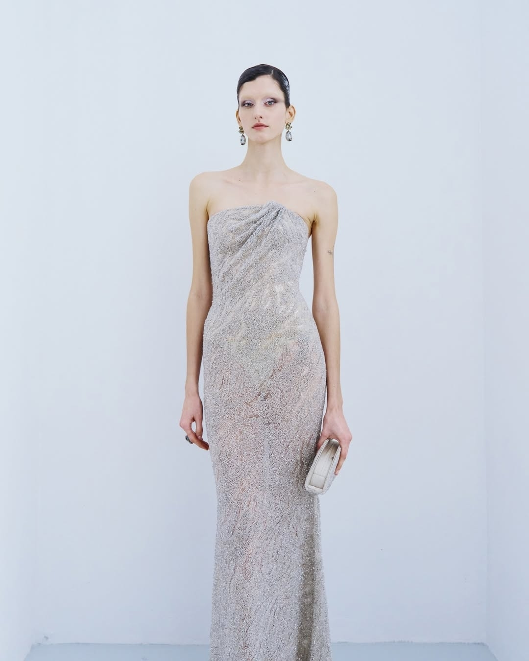 This season, designers are embracing barely-there elegance with sheer gowns that exude an effortless sensuality. Diaphanous fabrics like tulle, chiffon and beaded netting skim the body, creating an ethereal, weightless effect that feels both sultry and sophisticated. Whether it's a delicate overlay trailing beyond the hemline or a fully sheer skirt revealing just a hint of structure beneath, this trend is all about subtle allure. With strategic lining and soft transparency, these sheer slips offer a modern take on bridal minimalism—daring yet undeniably dreamy.